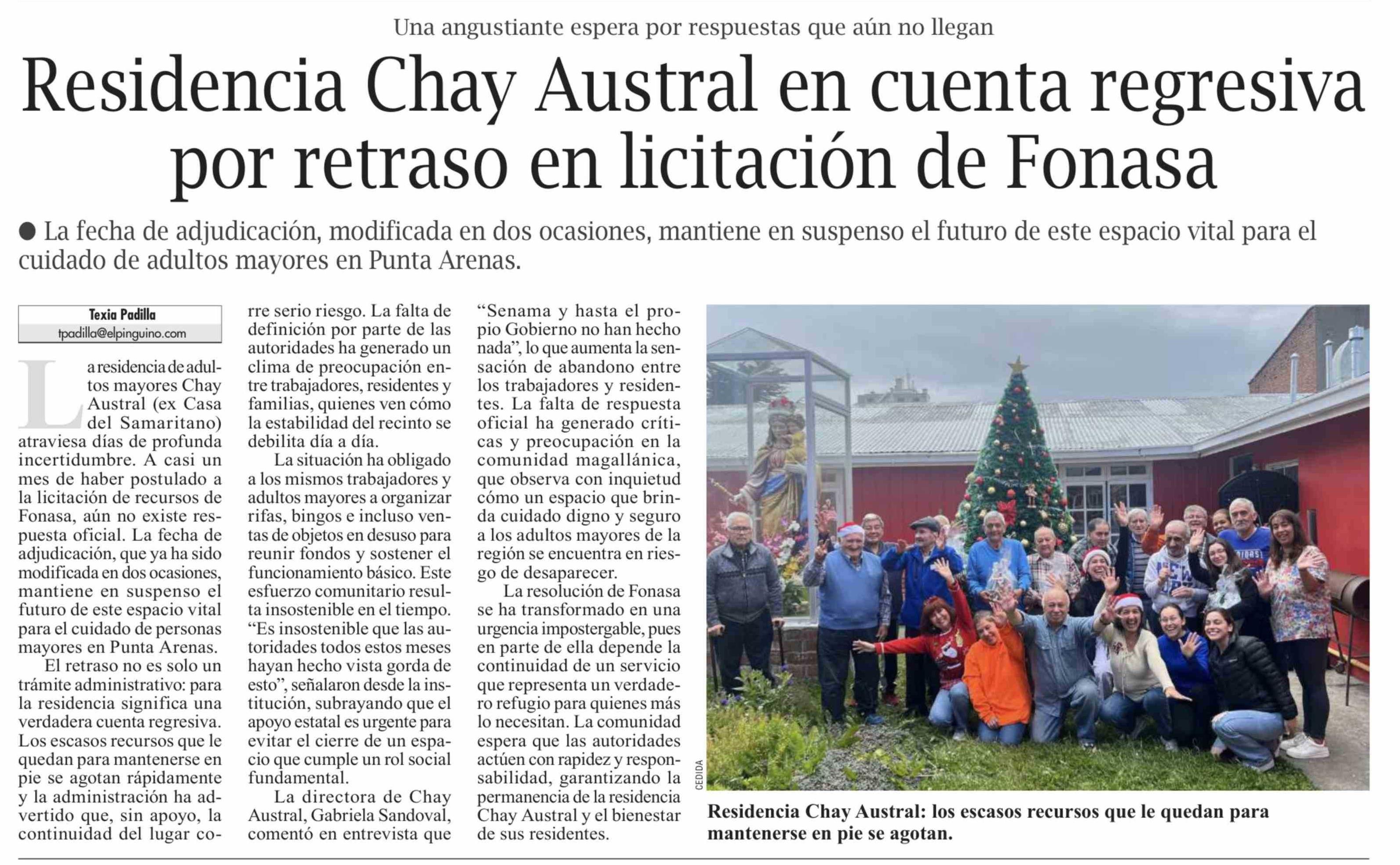 Residencia Chay Austral en cuenta regresiva por retraso en licitación de Fonasa 22-02-2026 El Pingüino |