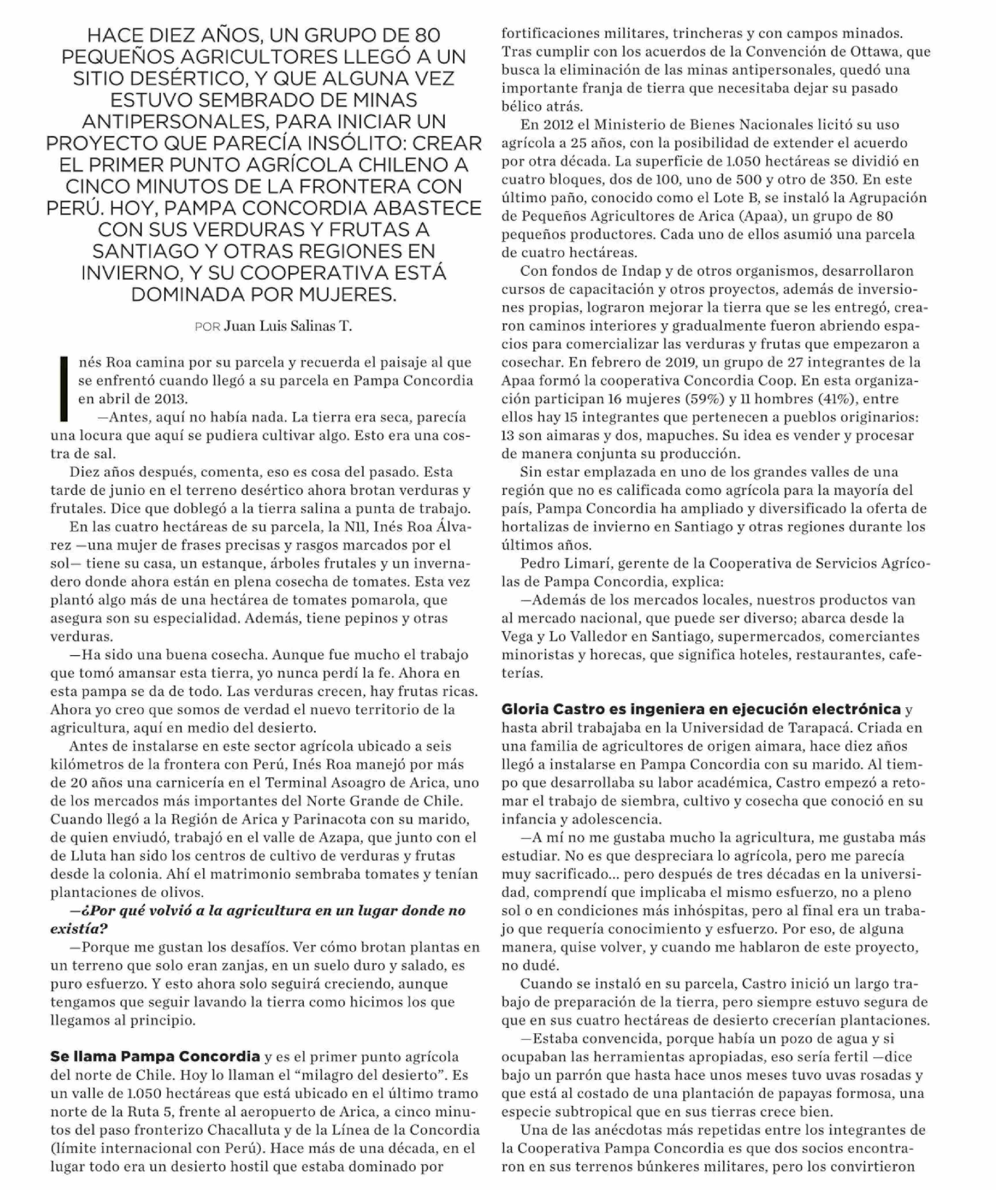 Las mujeres de Pampa Concordia 20-06-2023 El Mercurio |