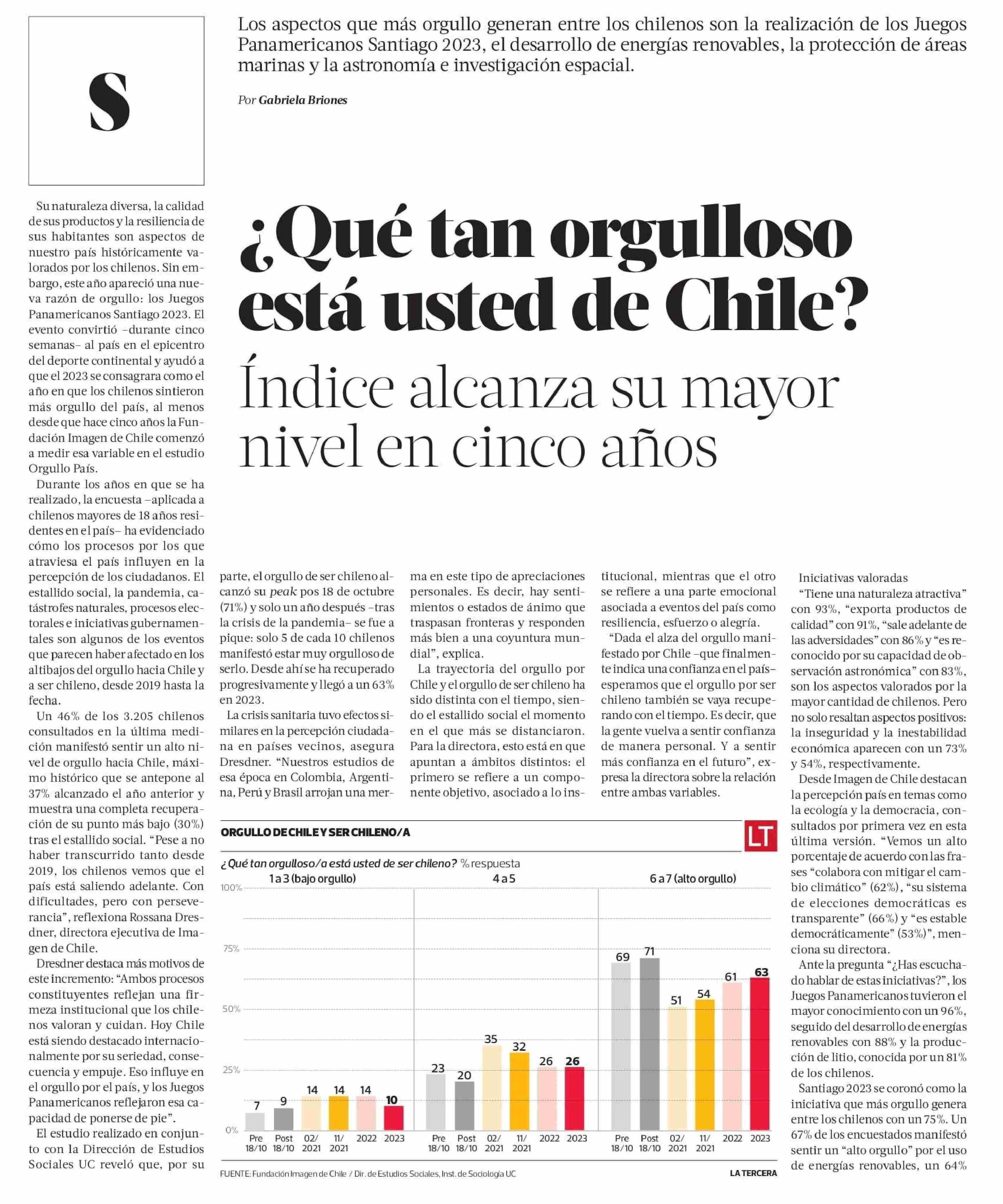 ¿Qué tan orgulloso está usted de Chile? 24-02-2024 La Tercera |
