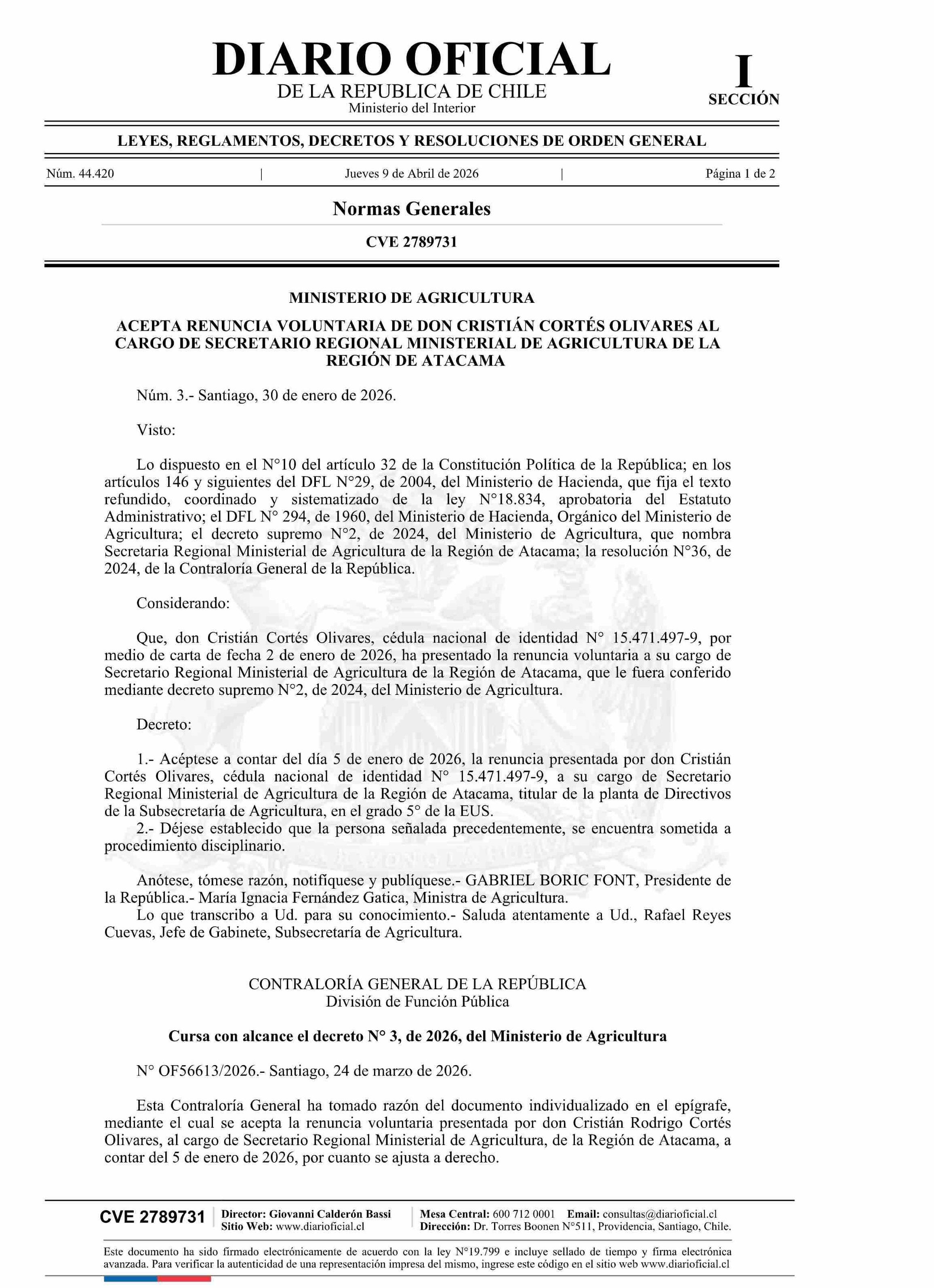 MINISTERIO DE AGRICULTURA 09-04-2026 Diario Oficial Edición Electrónica |