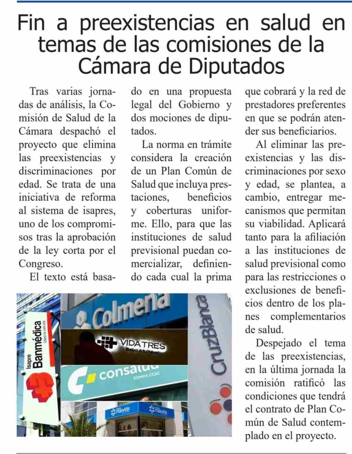 Título: Fin a preexistencias en salud en temas de las comisiones de la Cámara de Diputados