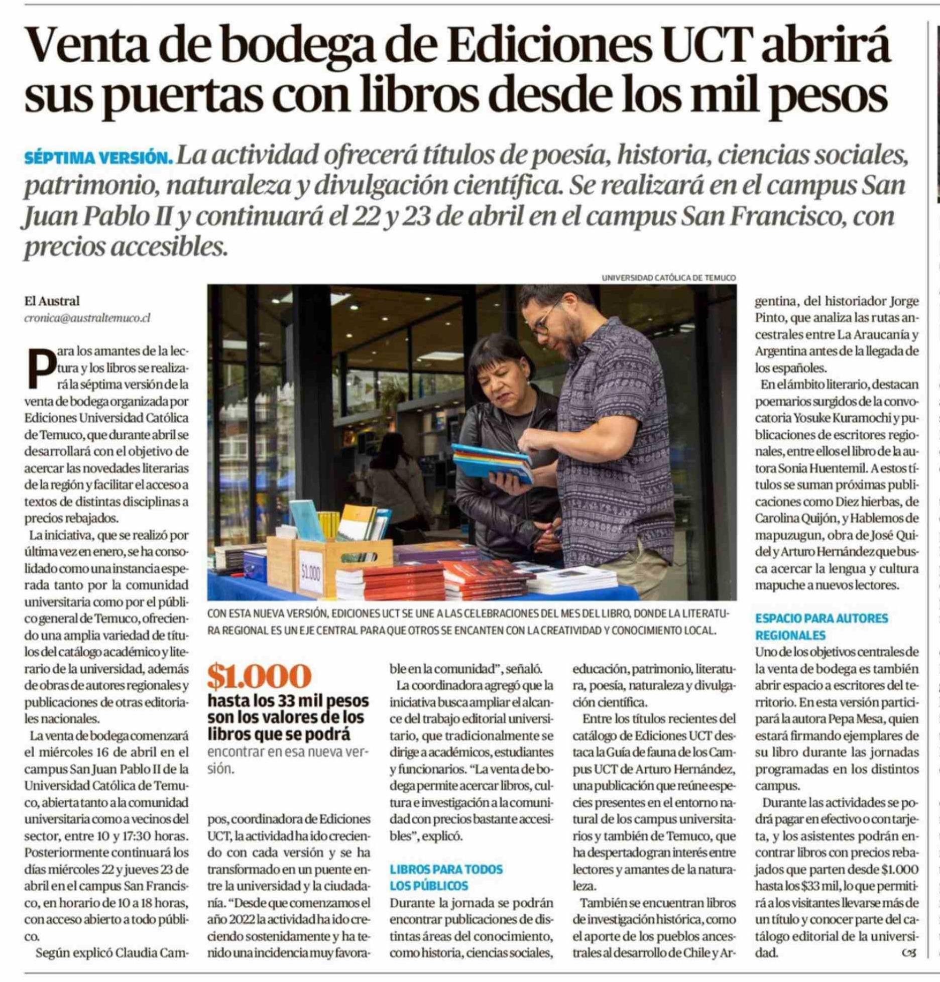 Título: Venta de bodega de Ediciones UCT abrirá sus puertas con libros desde los mil pesos