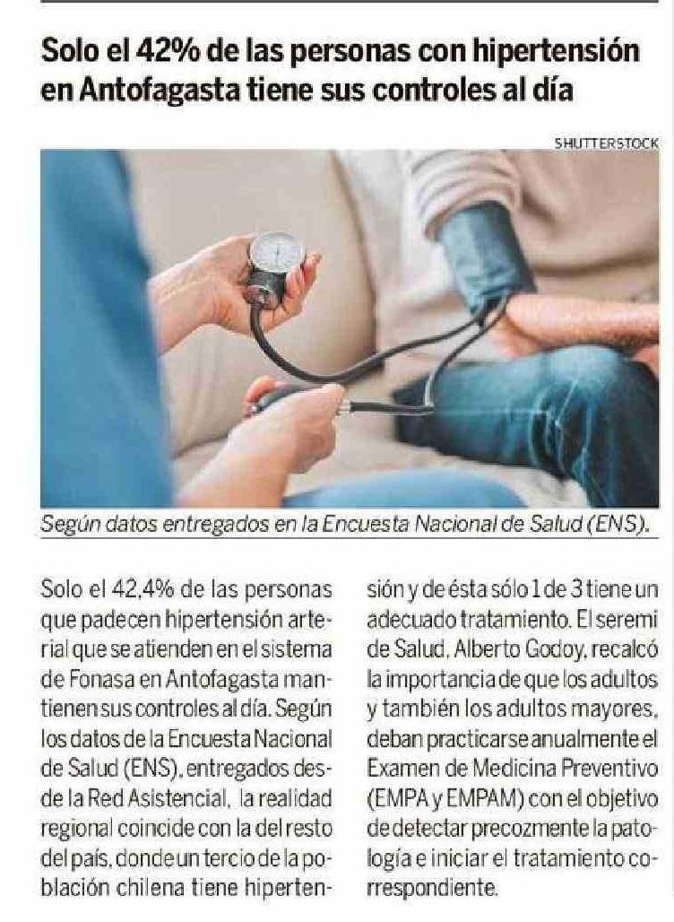 Título: Solo el 42% de las personas con hipertensión en Antofagasta tiene sus controles al día