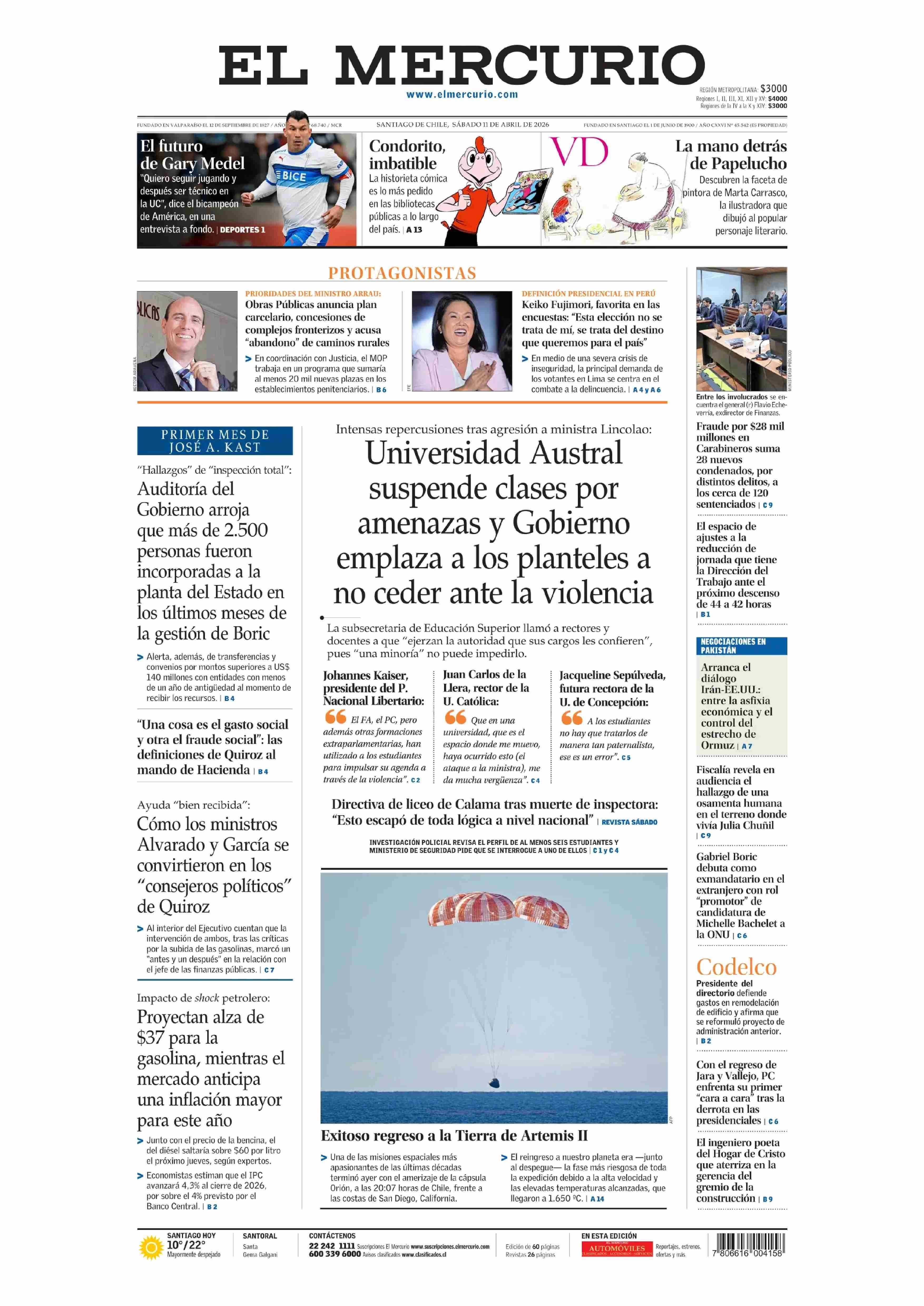 Fecha: 11-04-2026 Sector: Portada Región: Región Metropolitana de Santiago