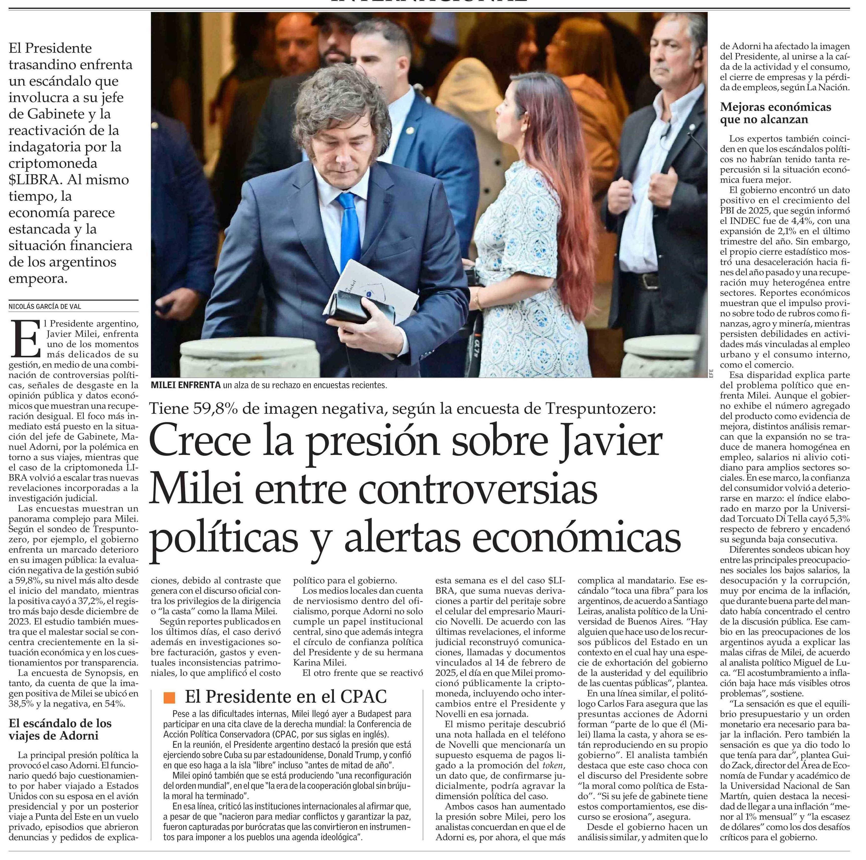 Título: Crece la presión sobre Javier Milei entre controversias políticas y alertas económicas