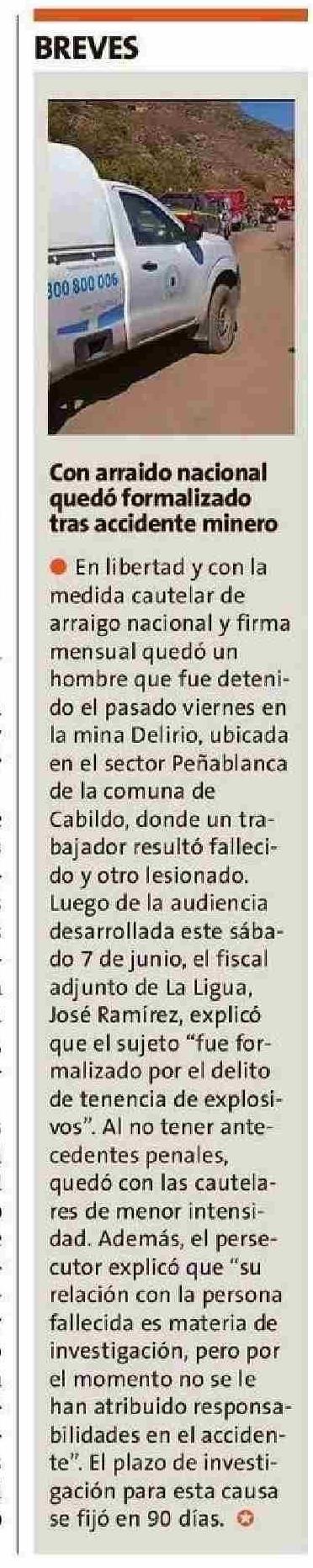 Con arraido nacional quedó formalizado tras accidente minero 09-06-2025 La Estrella de Valparaíso |