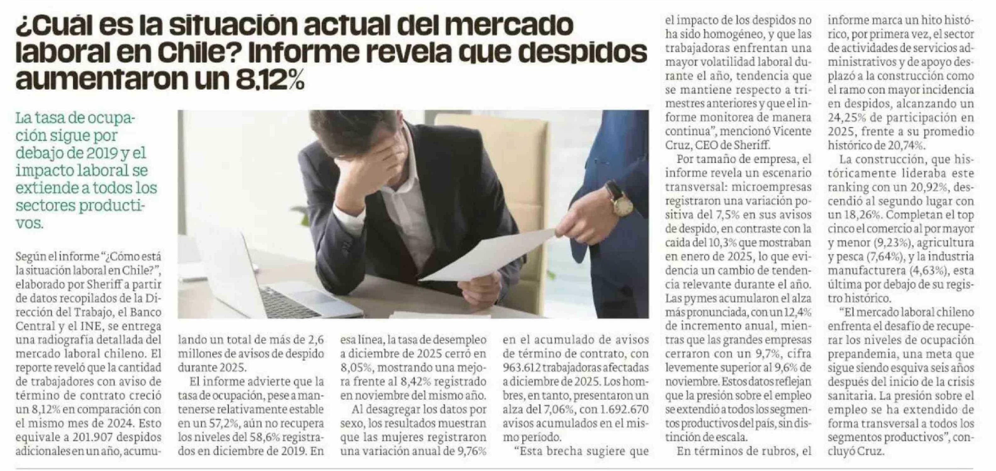 | Título: | ¿Cuál es la situación actual del mercado laboral en Chile? Informe revela que despidos aumentaron un 8.12% |