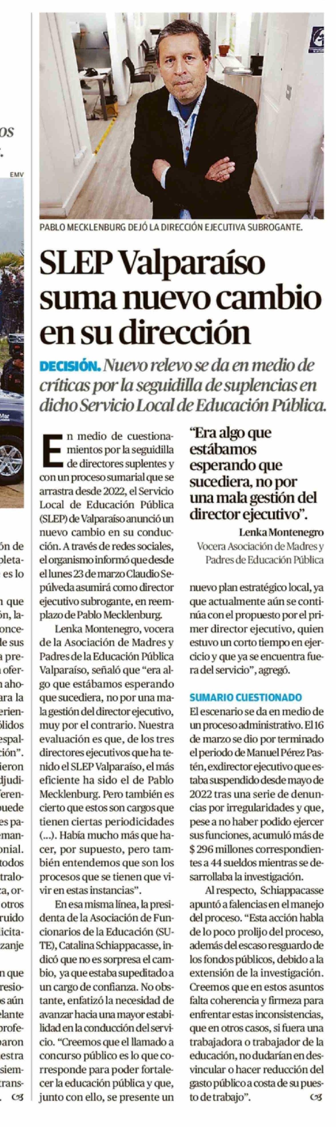 SLEP Valparaíso suma nuevo cambio en su dirección 21-03-2026 El Mercurio de Valparaíso |
