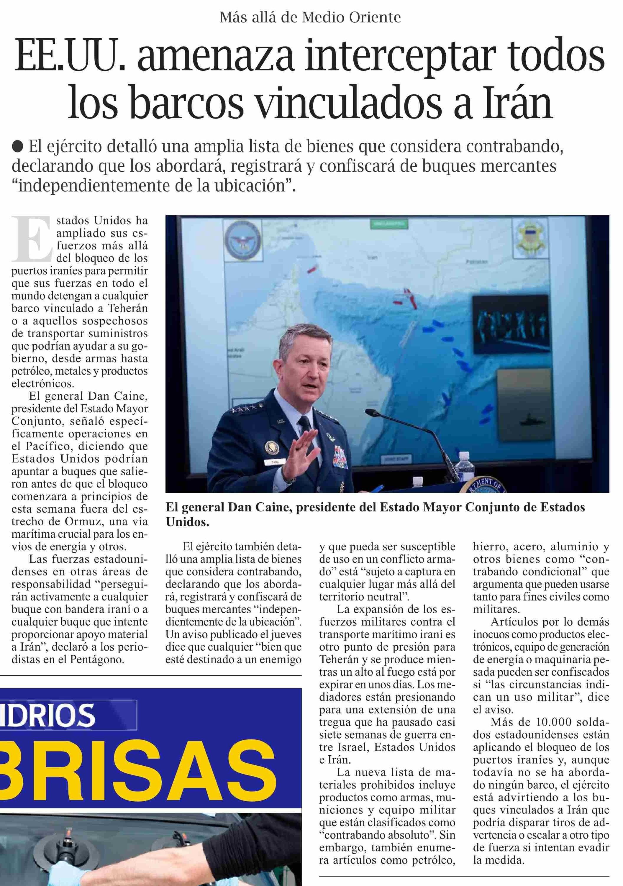 Título: EE.UU. amenaza interceptar todos los barcos vinculados a Irán