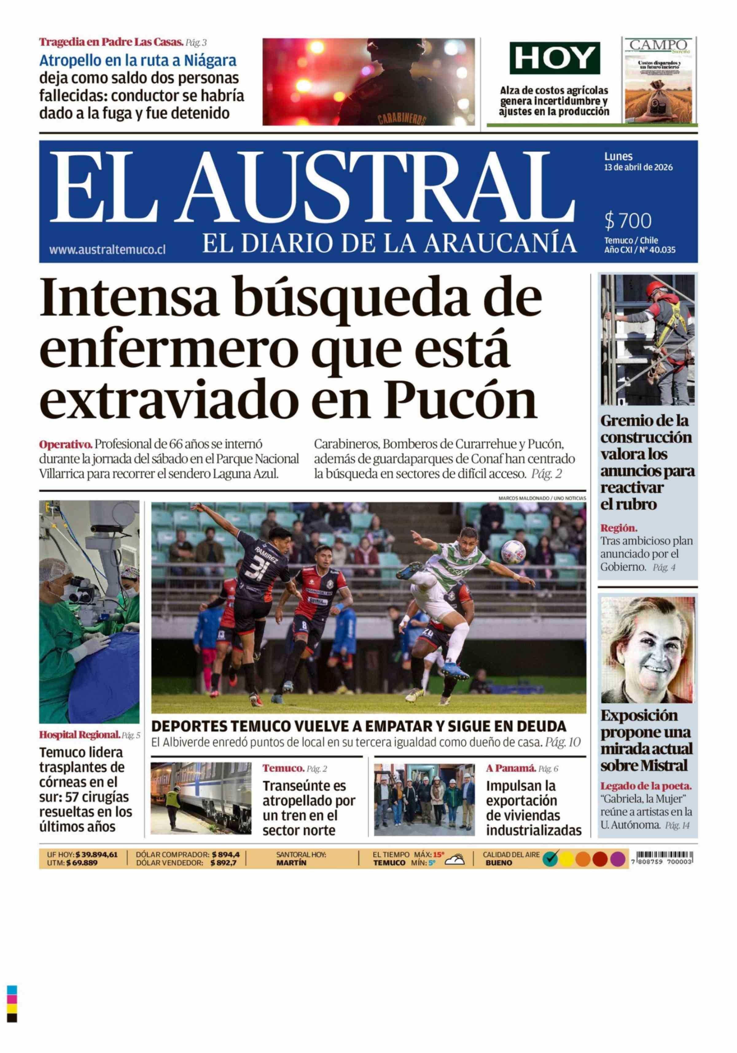 | Fecha: | 13-04-2026 | Sector: | Portada | Región: | Región de la Araucanía |
