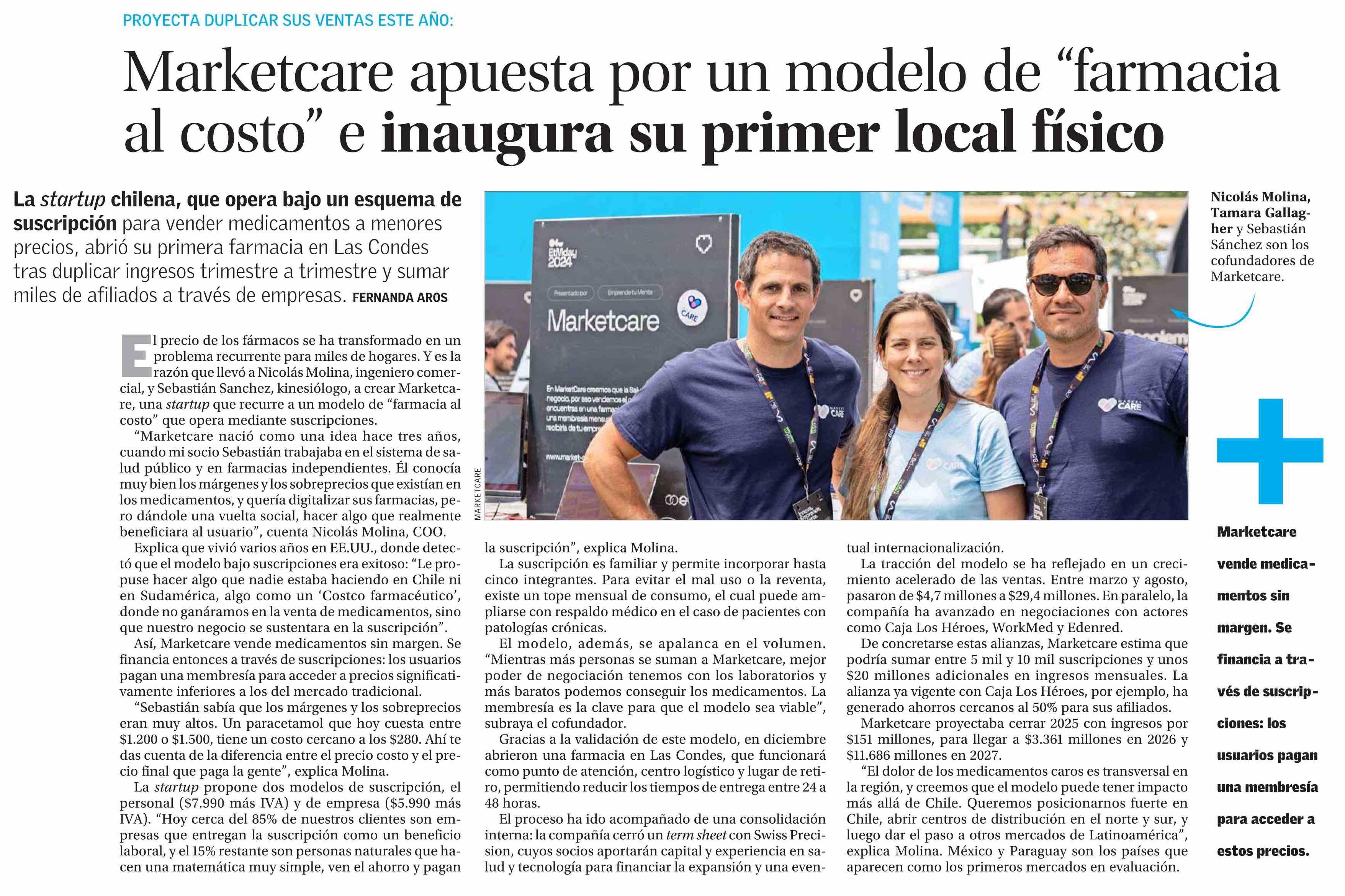 Marketcare apuesta por un modelo de “farmacia al costo” e inaugura su primer local físico 08-01-2026 El Mercurio |
