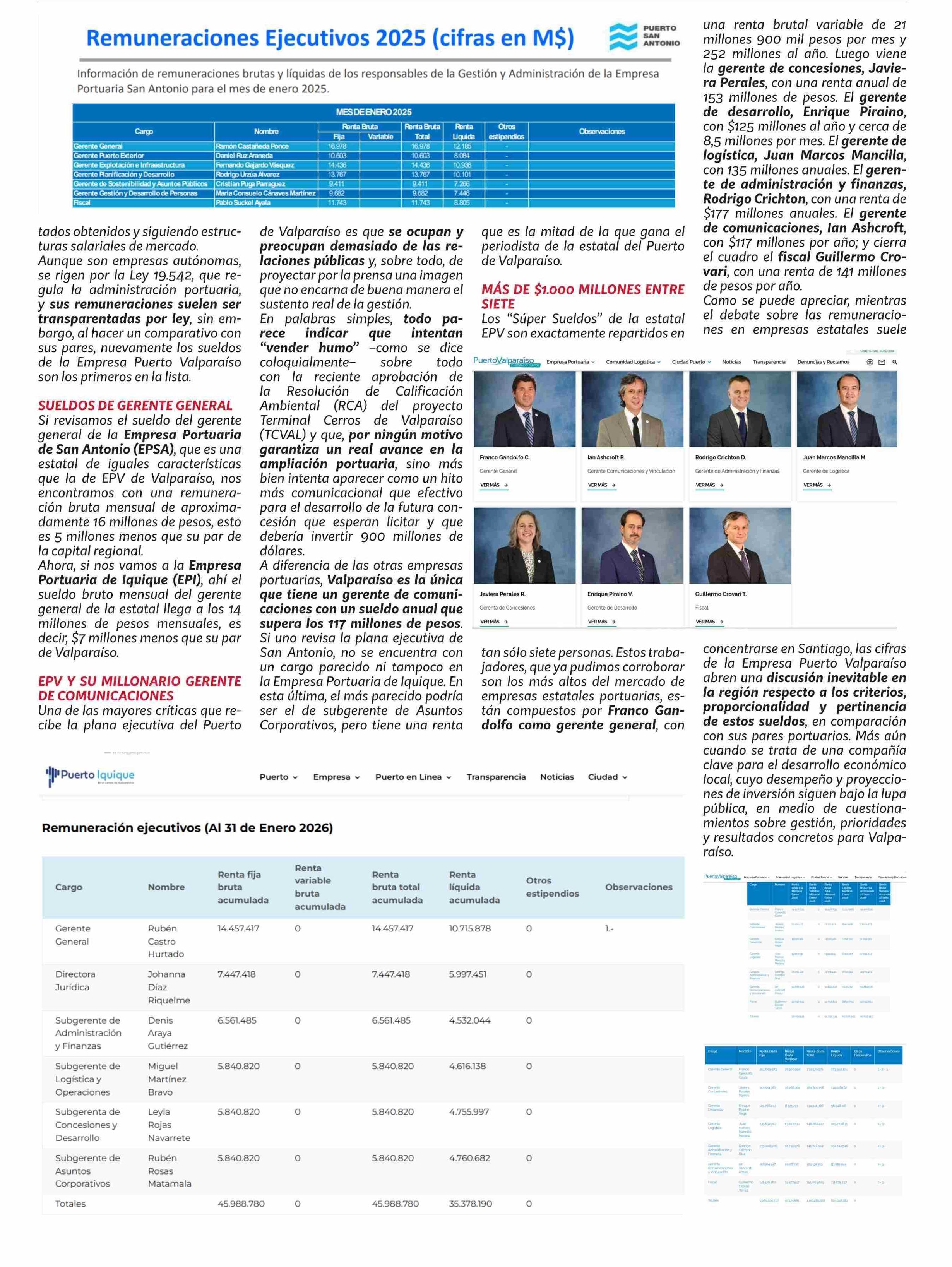 Título: Los "Súper Sueldos” del Puerto de Valparaíso: empresa estatal paga a siete ejecutivos más de mil millones de pesos al año