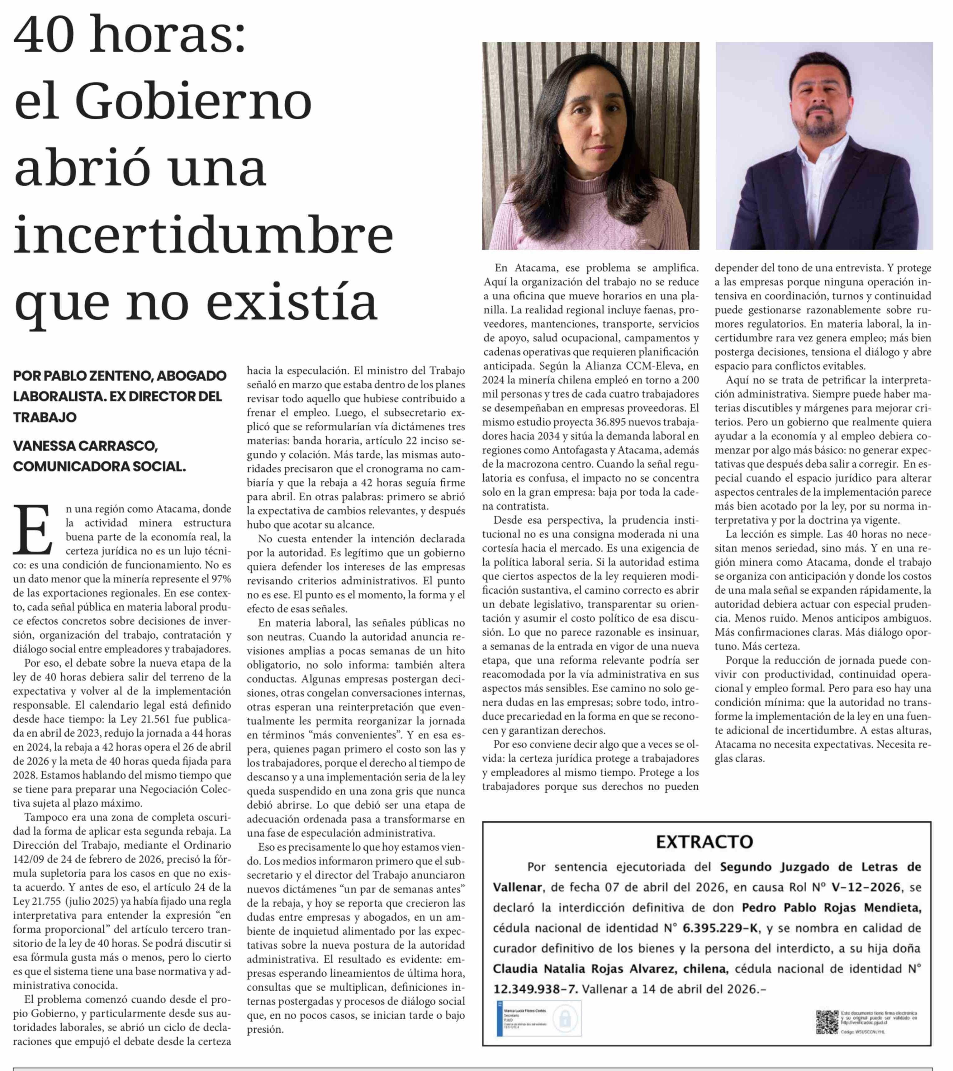 Fecha: 19-04-2026 Sector: Noticia general Región: Región de Atacama
