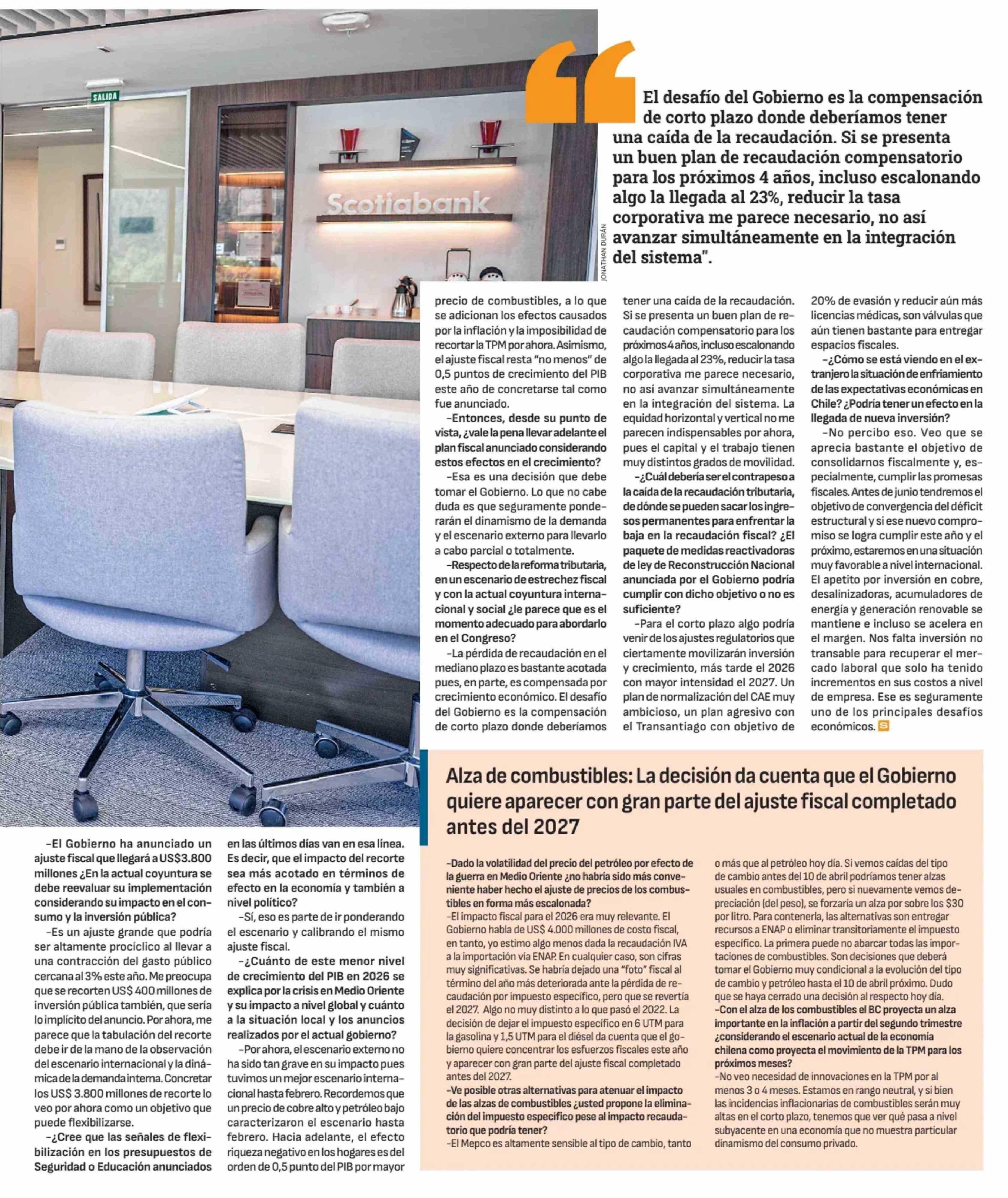 Título: "Crecer al 2% ya es ambicioso. ( ... ) El ajuste fiscal resta, no menos, de 0,5 puntos de crecimiento del PIB este año'