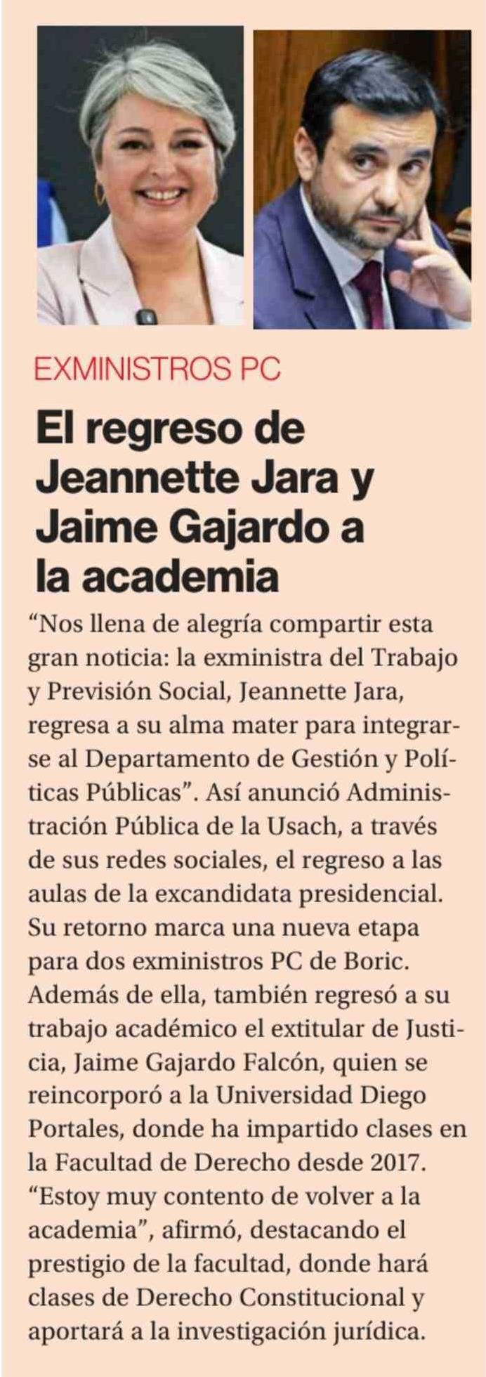 | Título: | El regreso de Jeannette Jara y Jaime Gajardo a la academia |