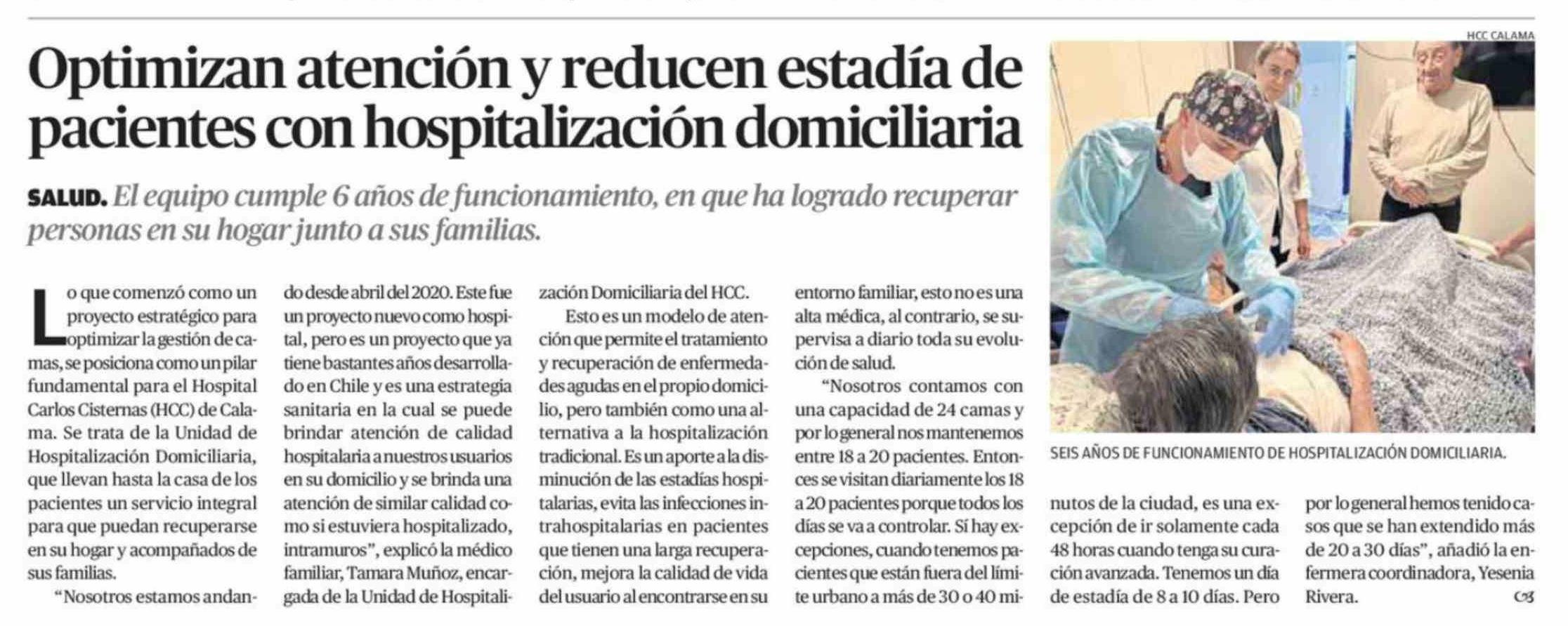 Título: Optimizan atención y reducen estadía de pacientes con hospitalización domiciliaria