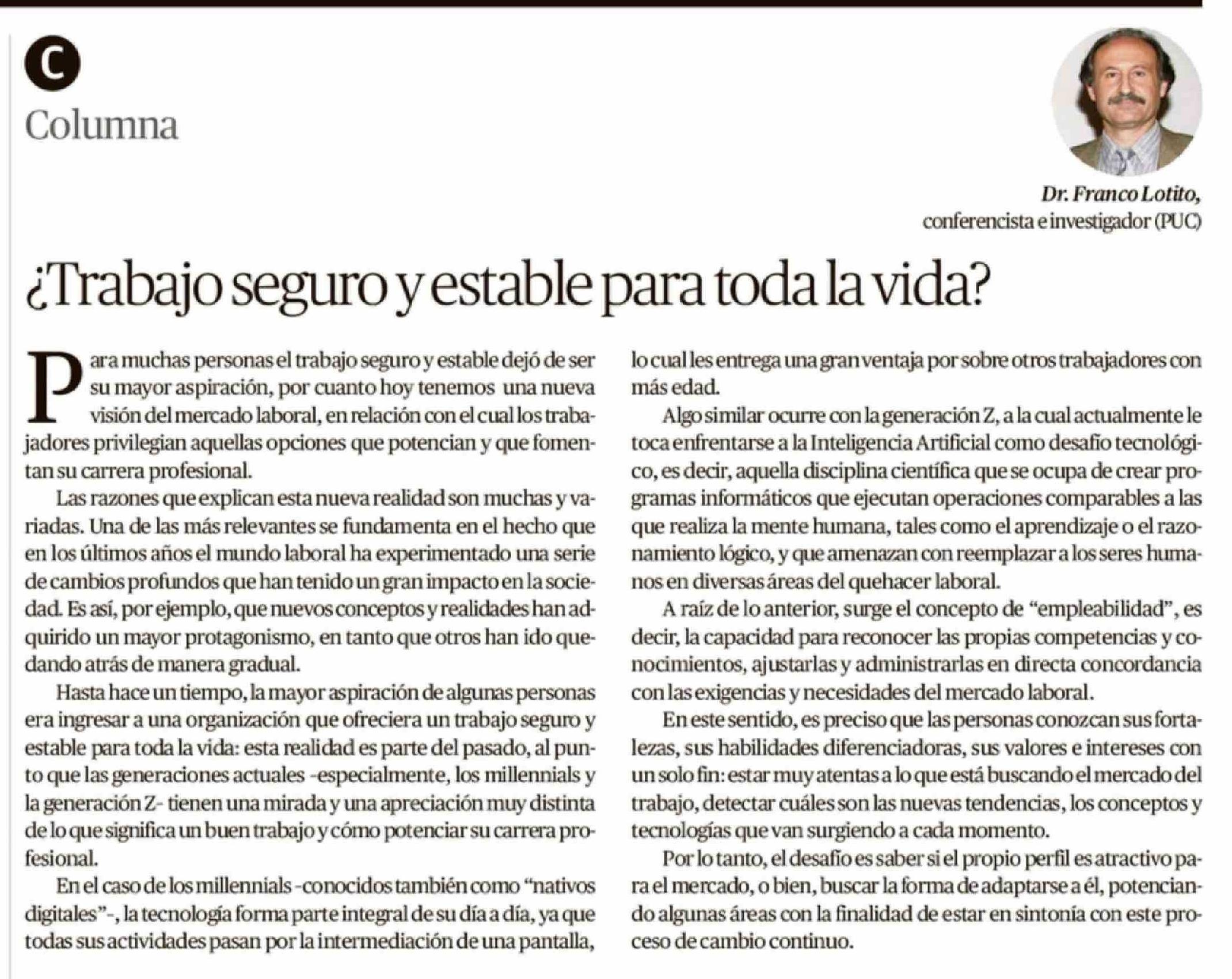 Título: Columnas de Opinión: ¿Trabajo seguro y estable para toda la vida?