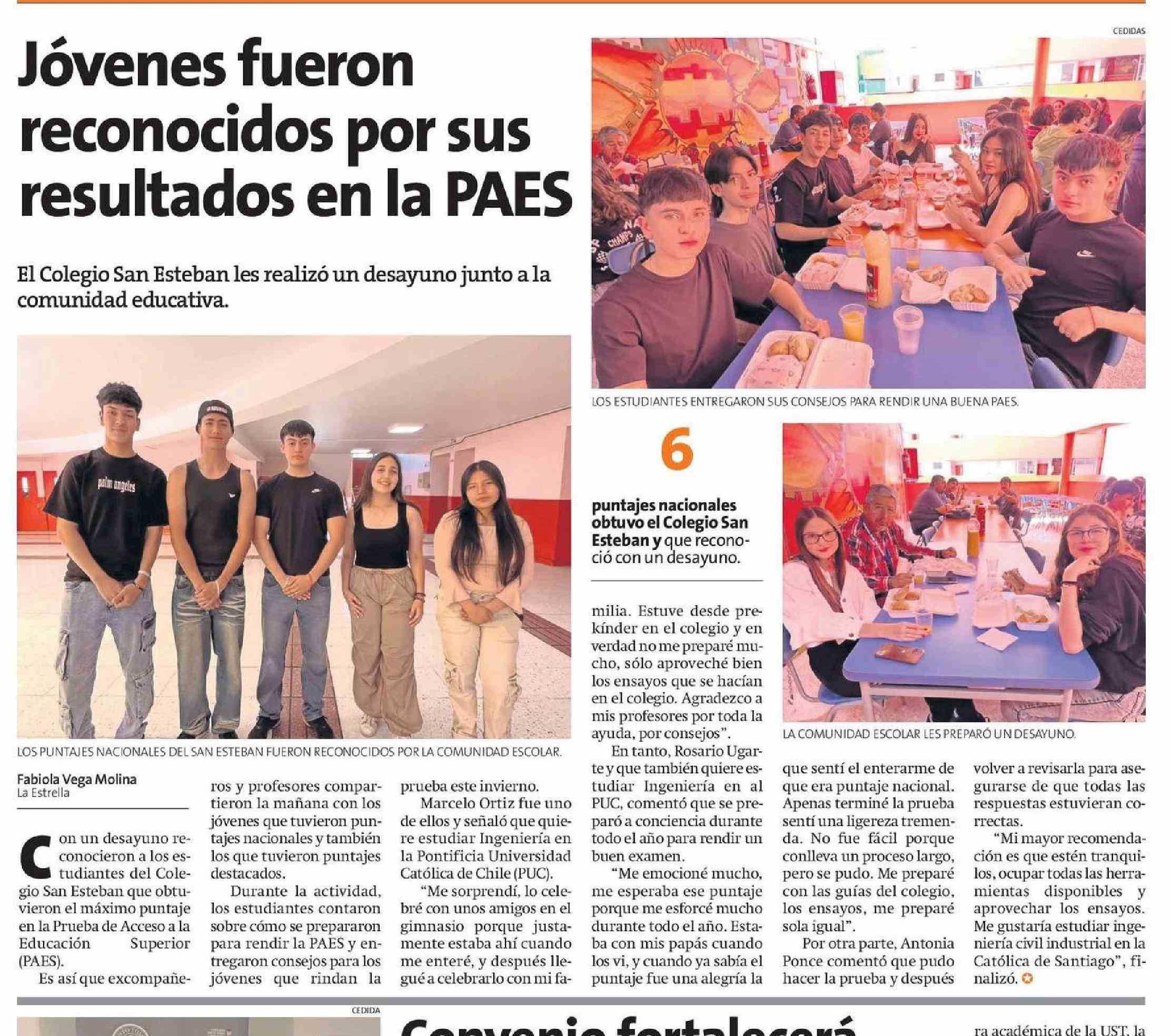 Jóvenes fueron reconocidos por sus resultados en la PAES 09-01-2025 La Estrella Del Loa |