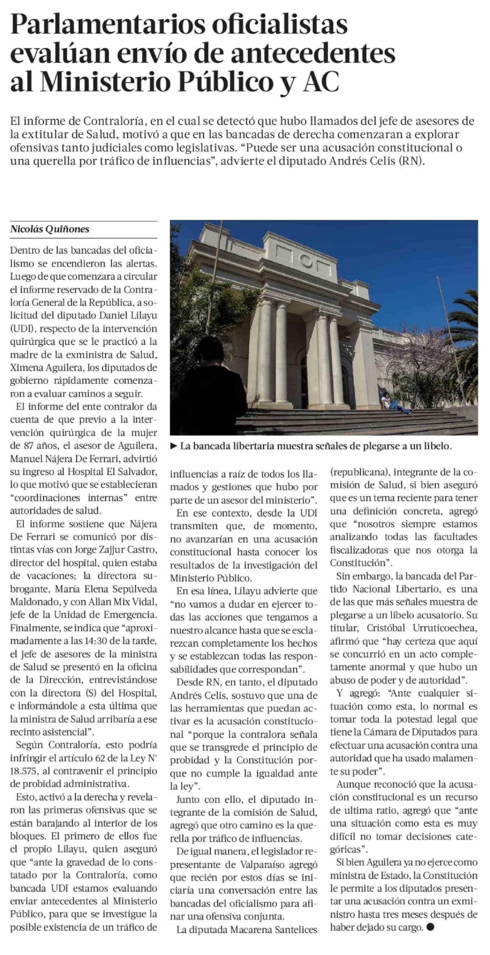 Parlamentarios oficialistas evalúan envío de antecedentes al Ministerio Público y AC 20-03-2026 La Tercera |