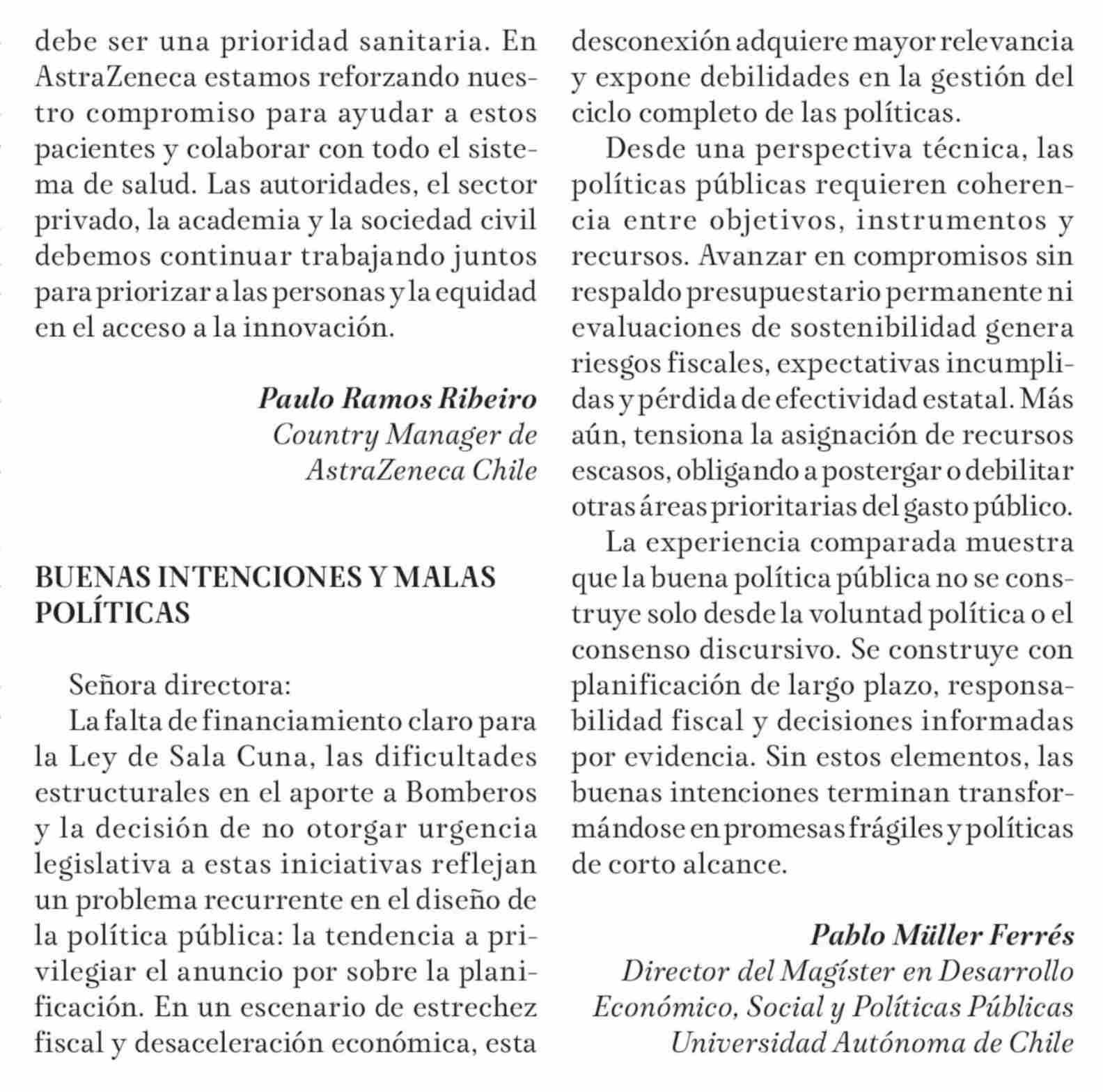 Título: Cartas: BUENAS INTENCIONES Y MALAS POLÍTICAS