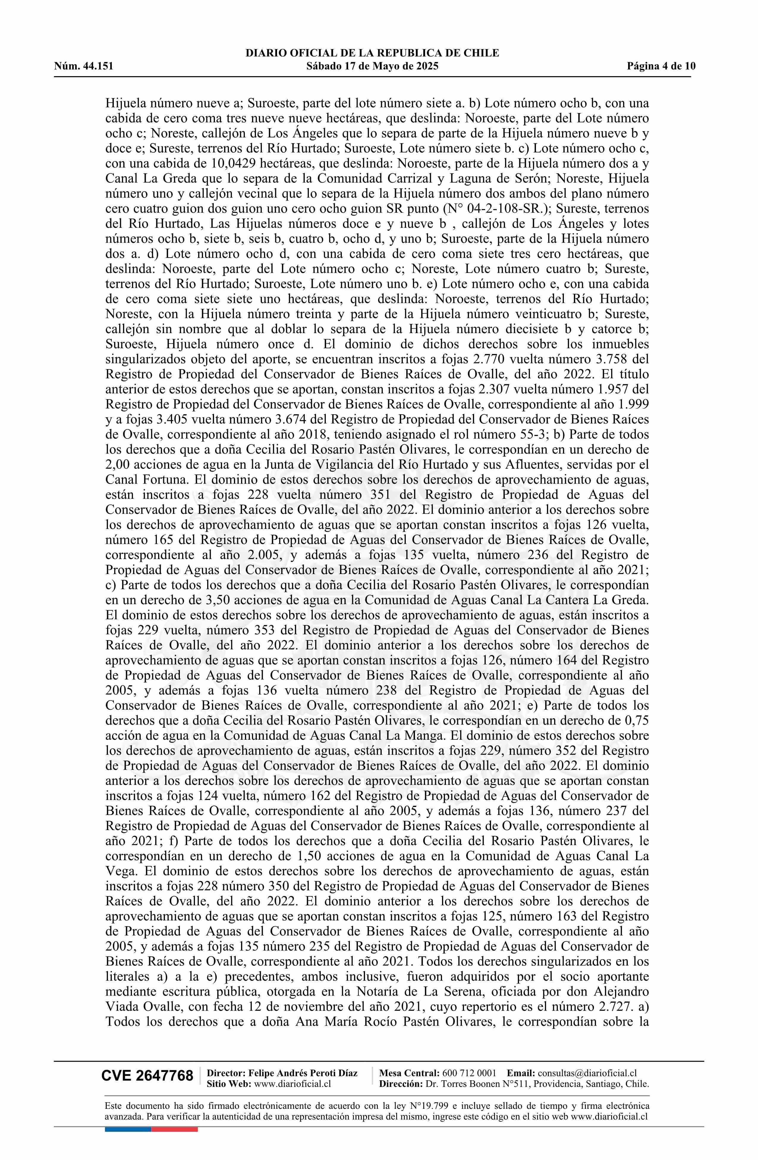SOCIEDAD AGRÍCOLA Y COMERCIAL PASTÉN LIMITADA 17-05-2025 Diario Oficial Edición Electrónica |