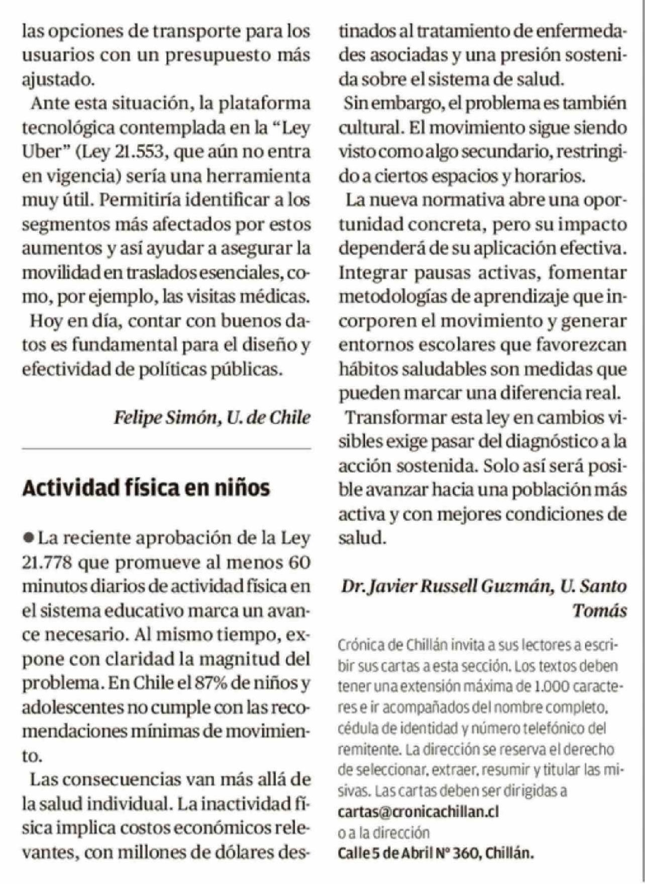 Cartas: Actividad física en niños