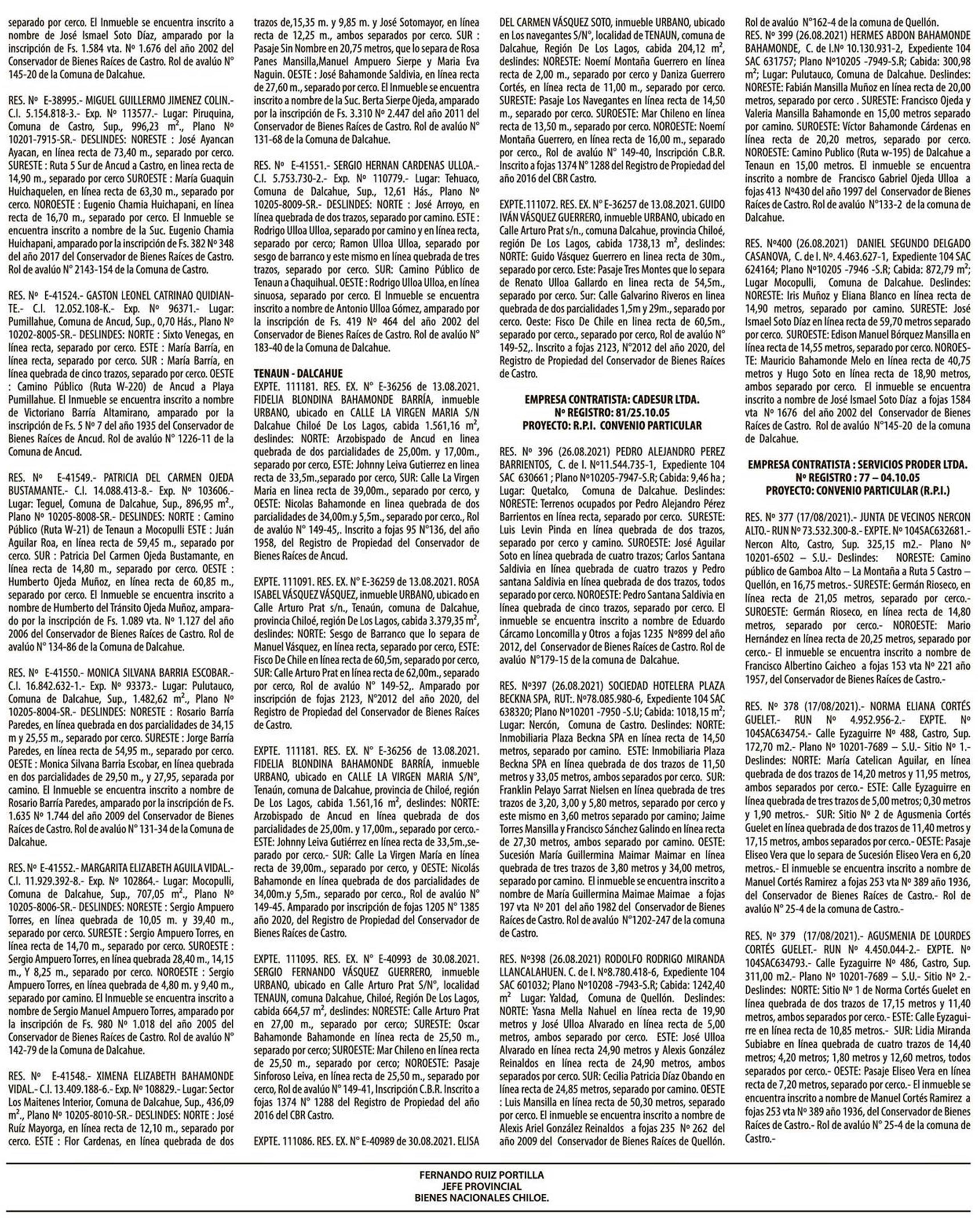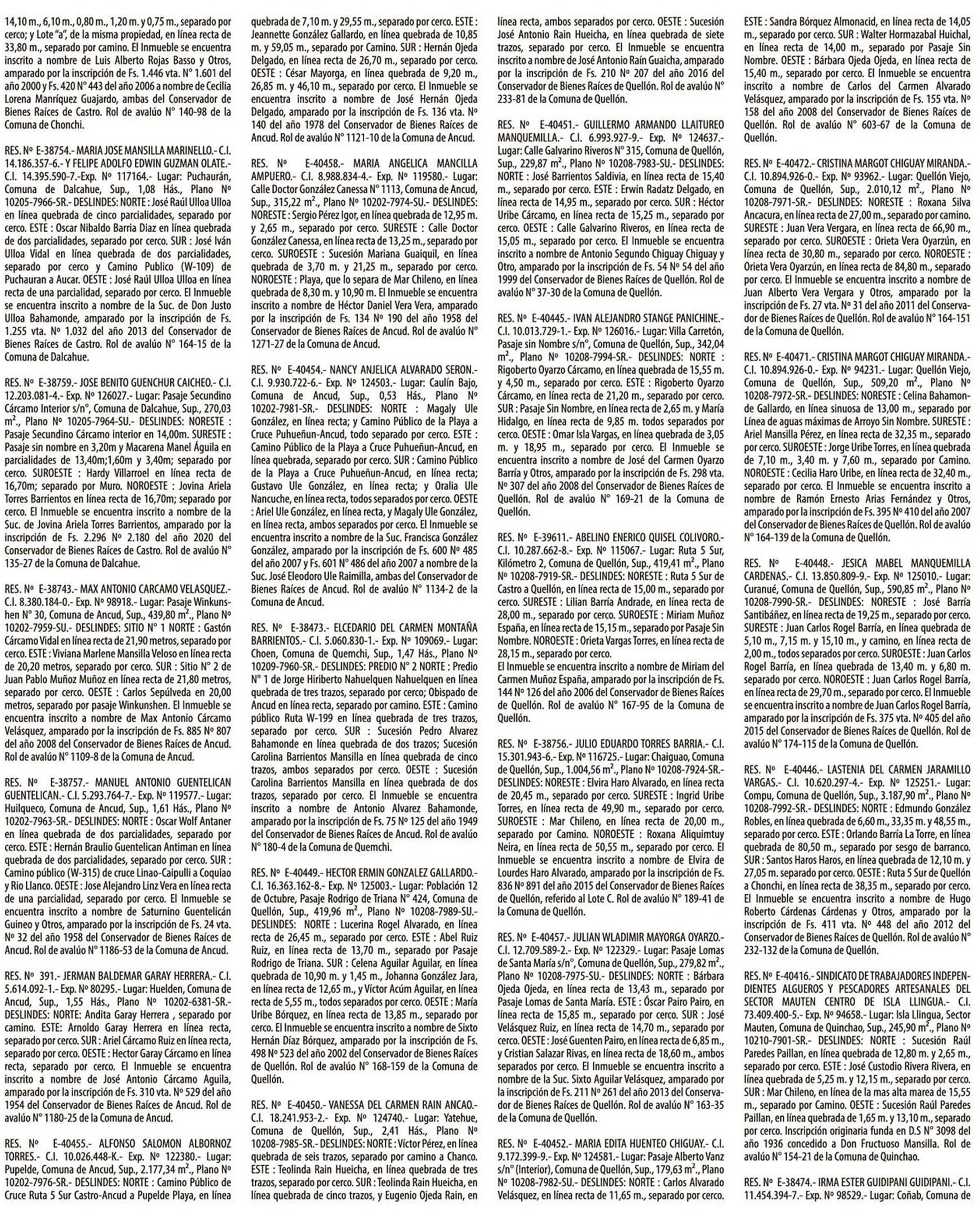 Extractos REGULARIZACION DE POSESION DE LA PEQUEÑA PROPIEDAD RAÍZ Y CONSTITUCION DEL DOMINIO SOBRE ELLA OFICINA PROVINCIAL DE BIENES NACIONALES DE CHILOE. 15-09-2021 La Estrella de Chiloé |
