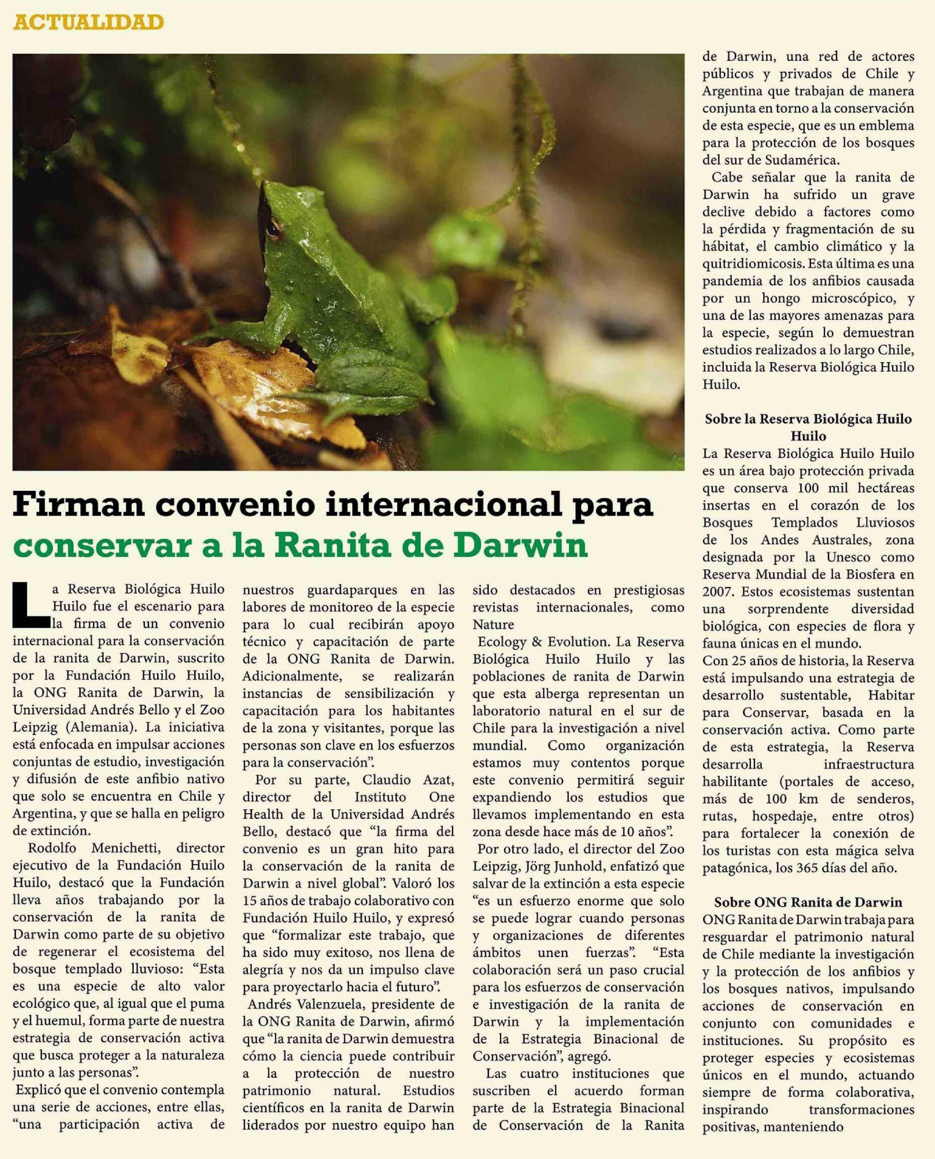 | Título: | Firman convenio internacional para conservar a la Ranita de Darwin |