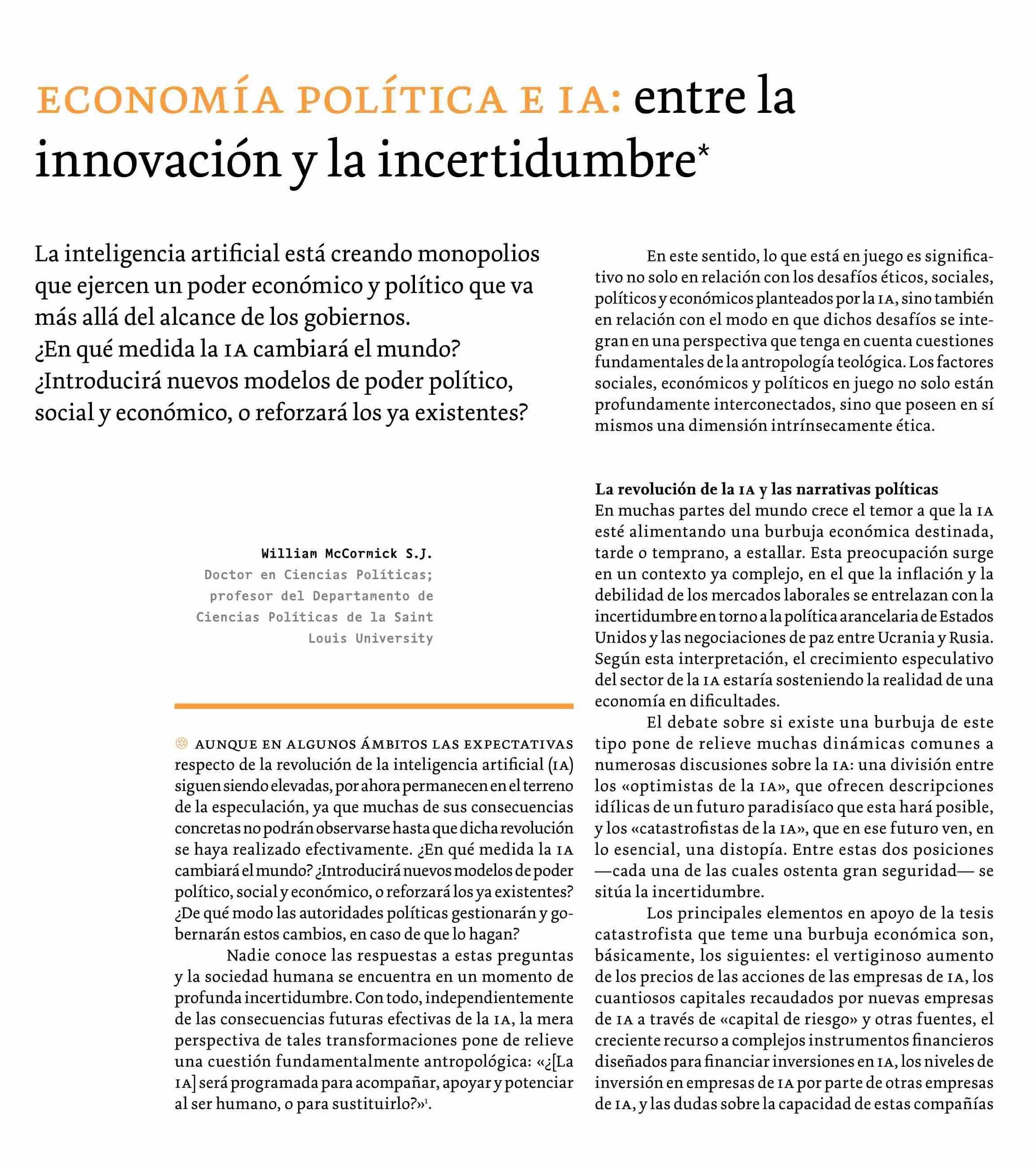 ECONOMÍA POLÍTICA E IAentre la innovación y la incertidumbre*