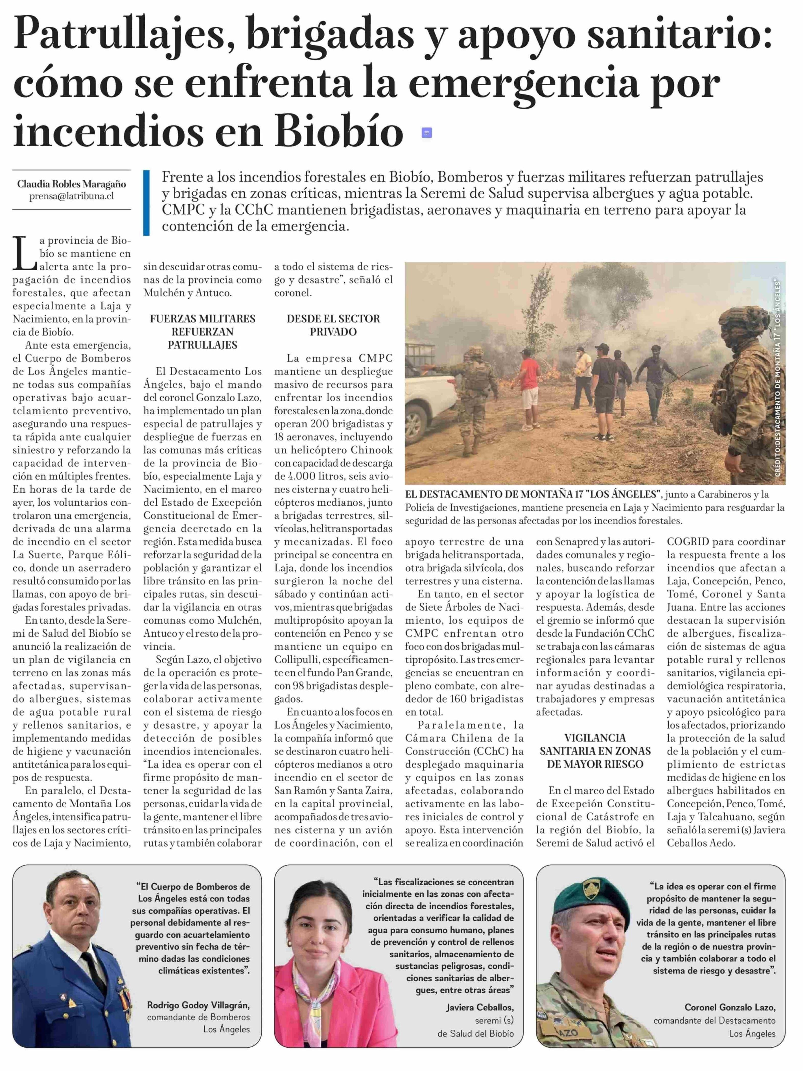 Patrullajes, brigadas y apoyo sanitario: cómo se enfrenta la emergencia por incendios en Biobío 19-01-2026 La Tribuna |