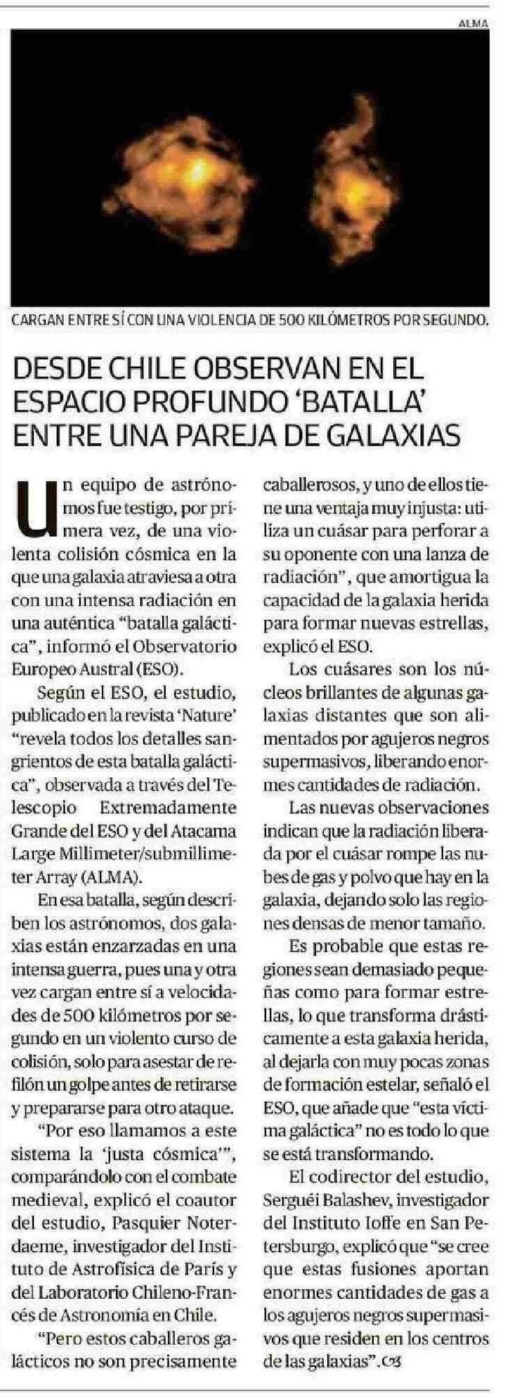 | Título: | DESDE CHILE OBSERVAN EN EL ESPACIO PROFUNDO ‘BATALLA’ ENTRE UNA PAREJA DE GALAXIAS |