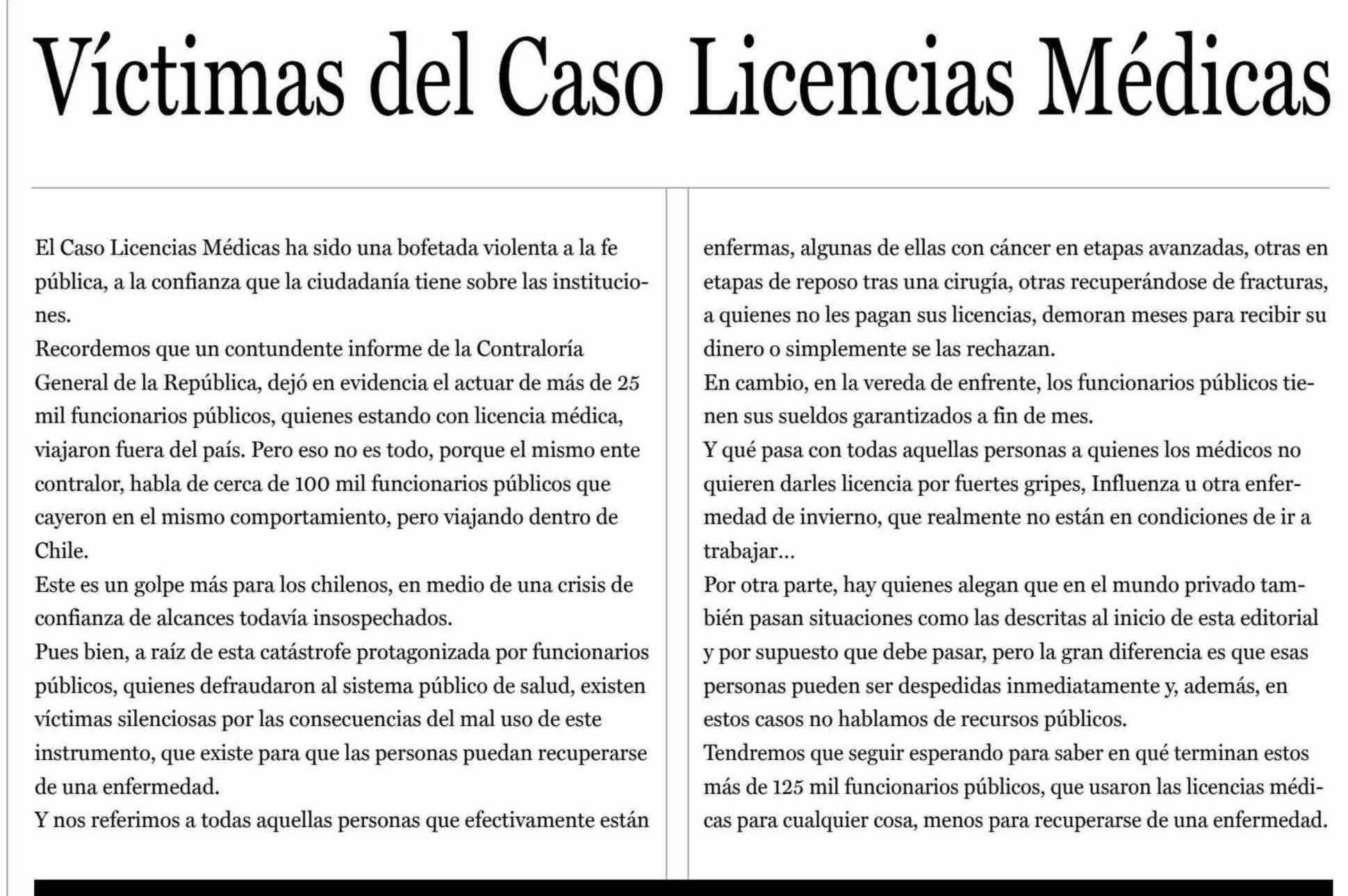 | Título: | EDITORIAL: Victimas del Caso Licencias Médicas |