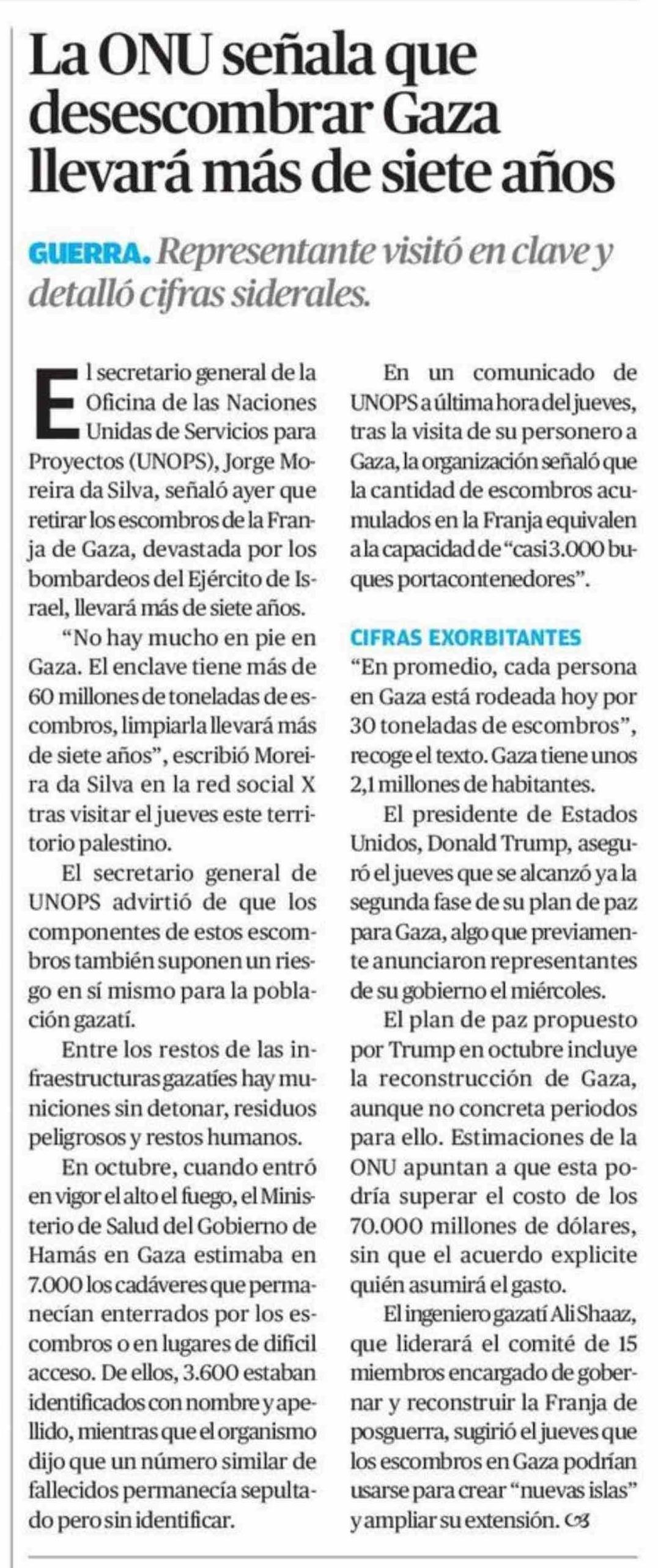 La ONU señala que desescombrar Gaza llevará más de siete años 17-01-2026 El Mercurio de Antofagasta |