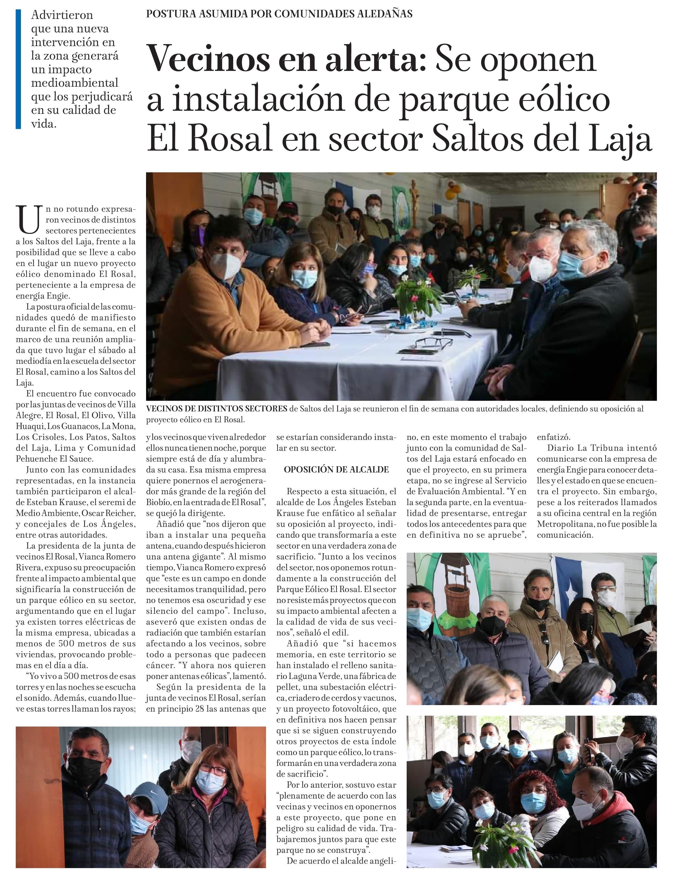 Vecinos en alerta: Se oponen a instalación de parque eólico El Rosal en sector Saltos del Laja 02-08-2022 La Tribuna |