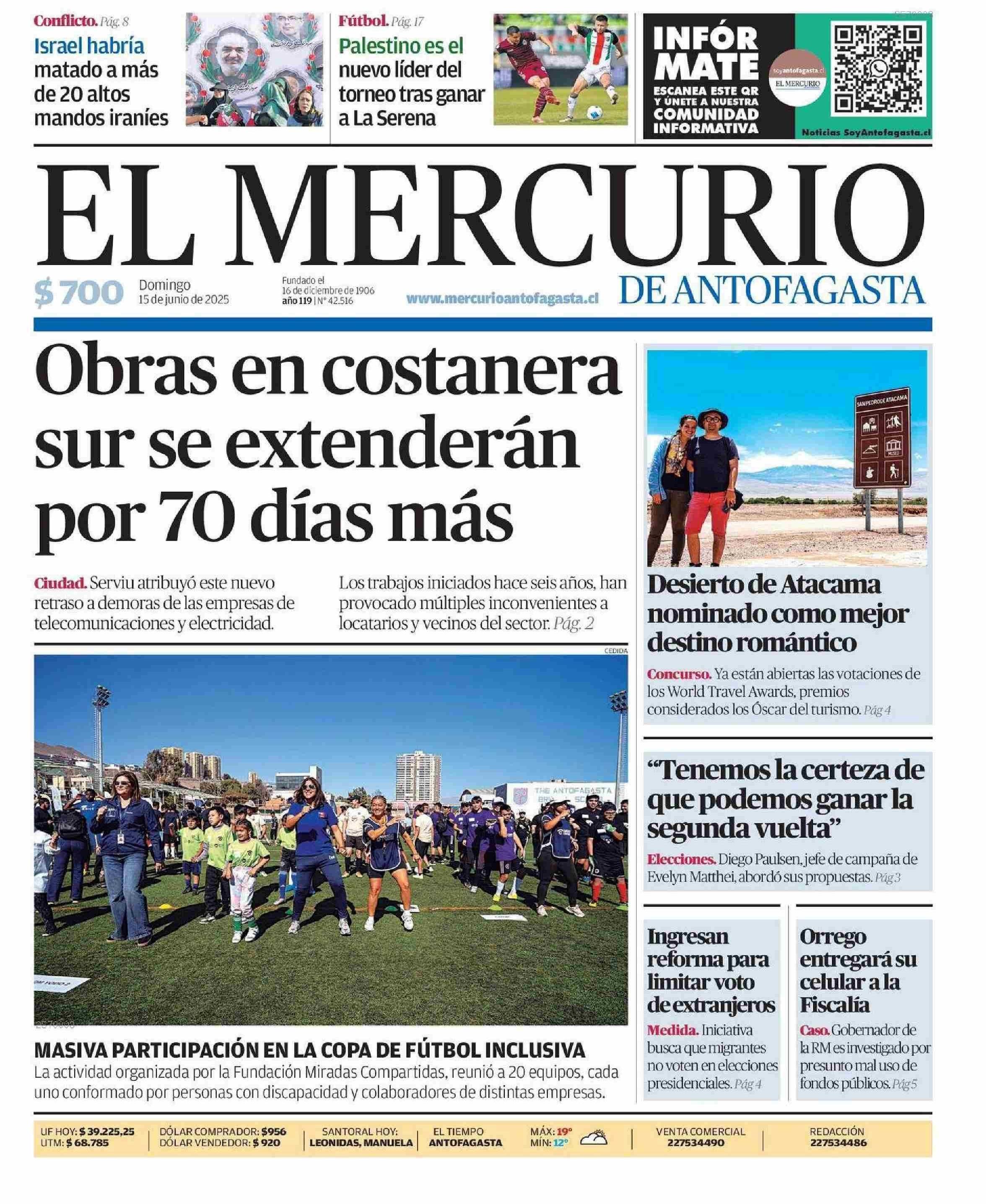 | Fecha: | 15-06-2025 | Sector: | Portada | Región: | Región de Antofagasta |