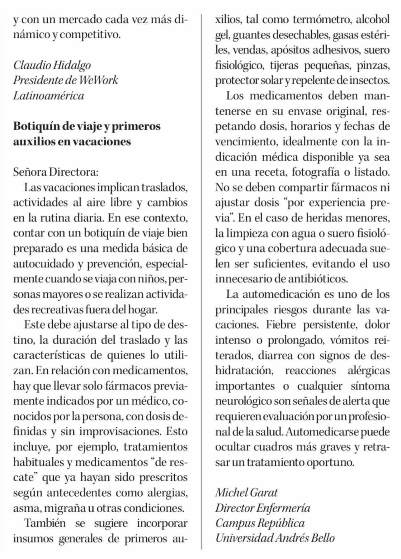 Cartas: Botiquín de viaje y primeros auxilios en vacaciones