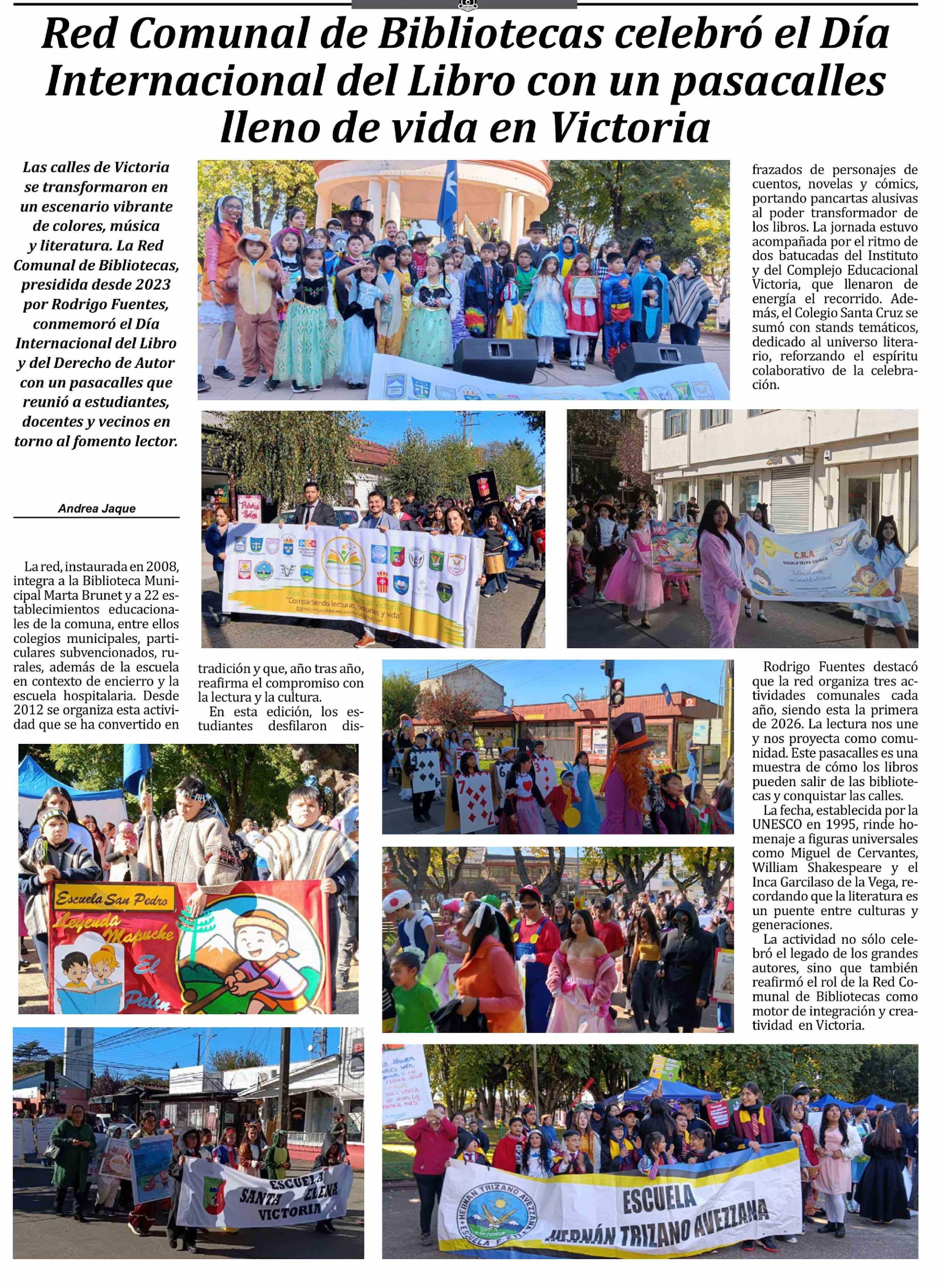 | Título: | Red Comunal de Bibliotecas celebró el Día Internacional del Libro con un pasacalles lleno de vida en Victoria |