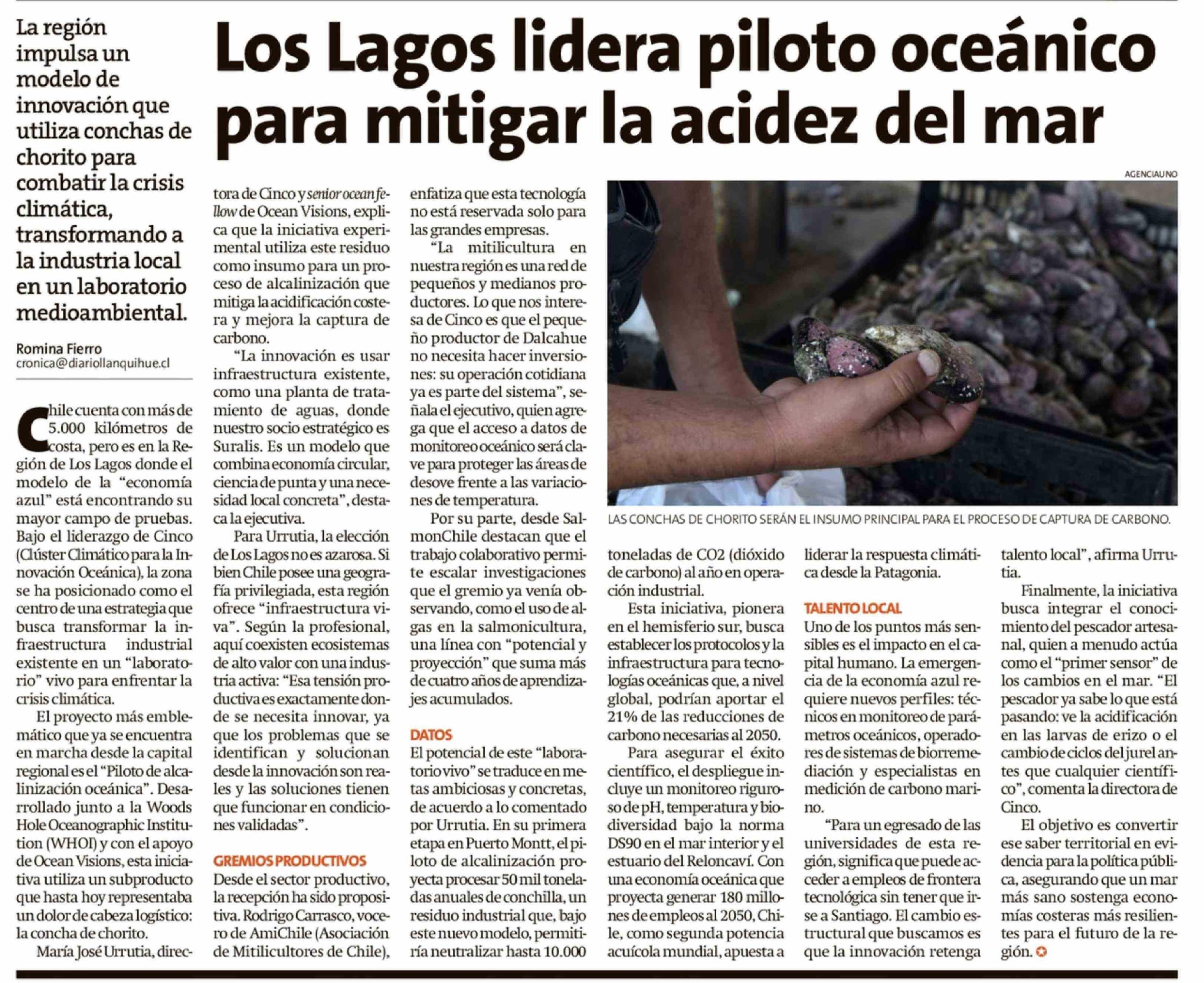Los Lagos lidera piloto oceánico para mitigar la acidez del mar 20-04-2026 La Estrella de Chiloé |