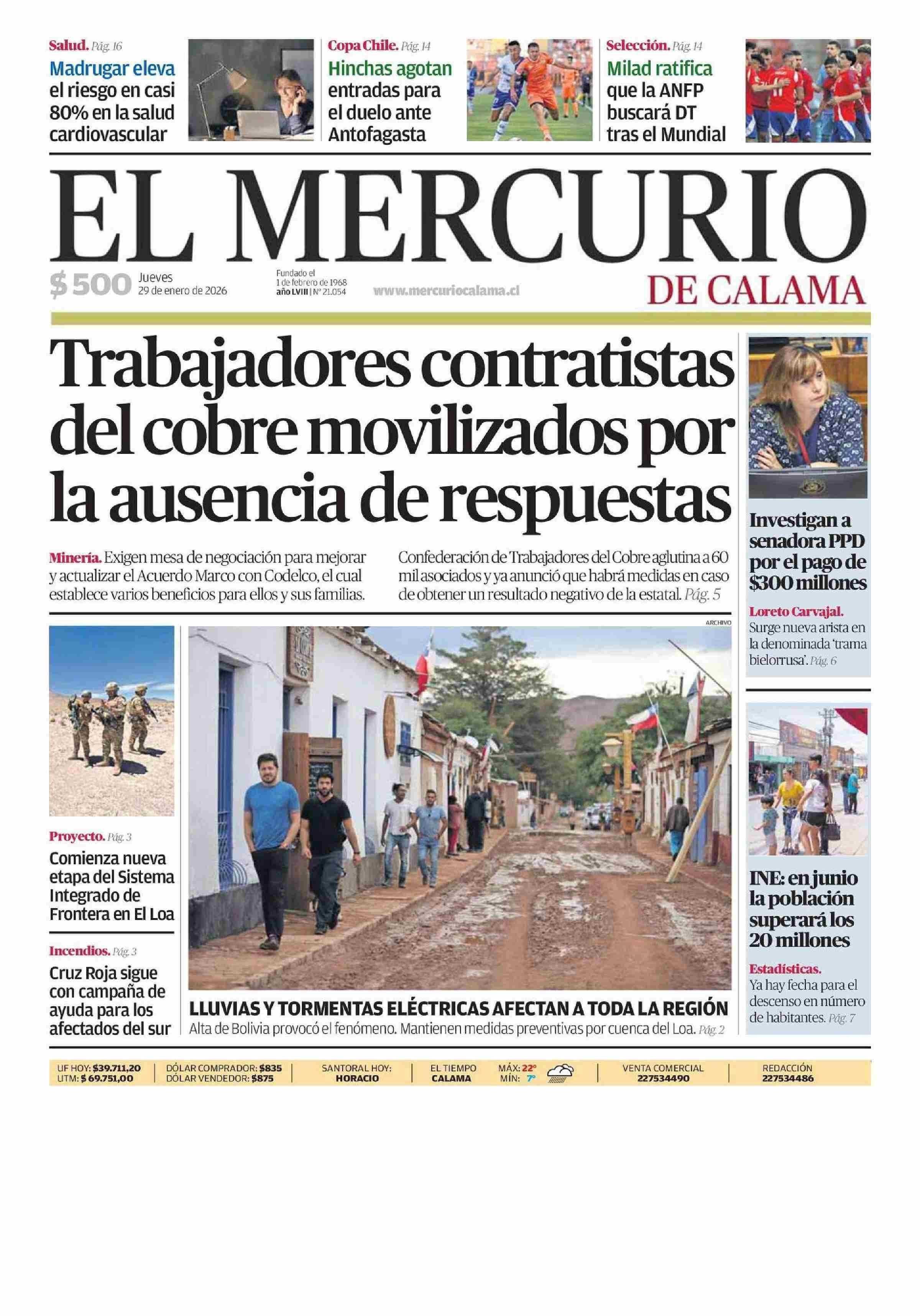PORTADA EL MERCURIO DE CALAMA CHILE 29-01-2026 El Mercurio de Calama |