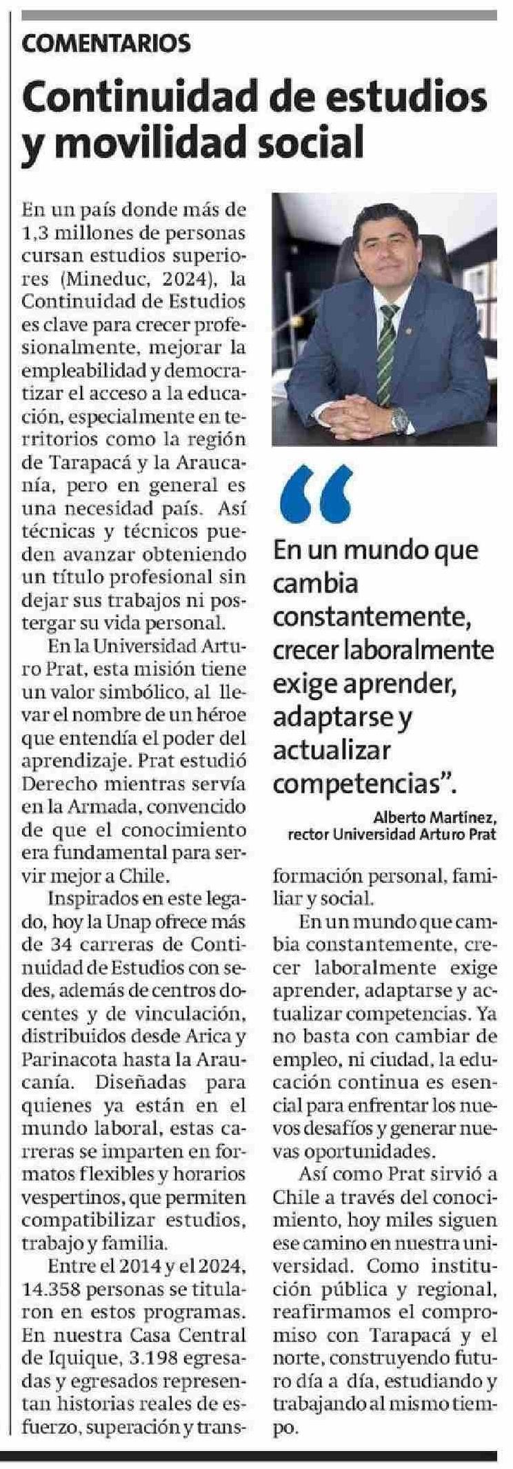 Columnas de Opinión: Continuidad de estudios y movilidad social 05-06-2025 La Estrella de Iquique |