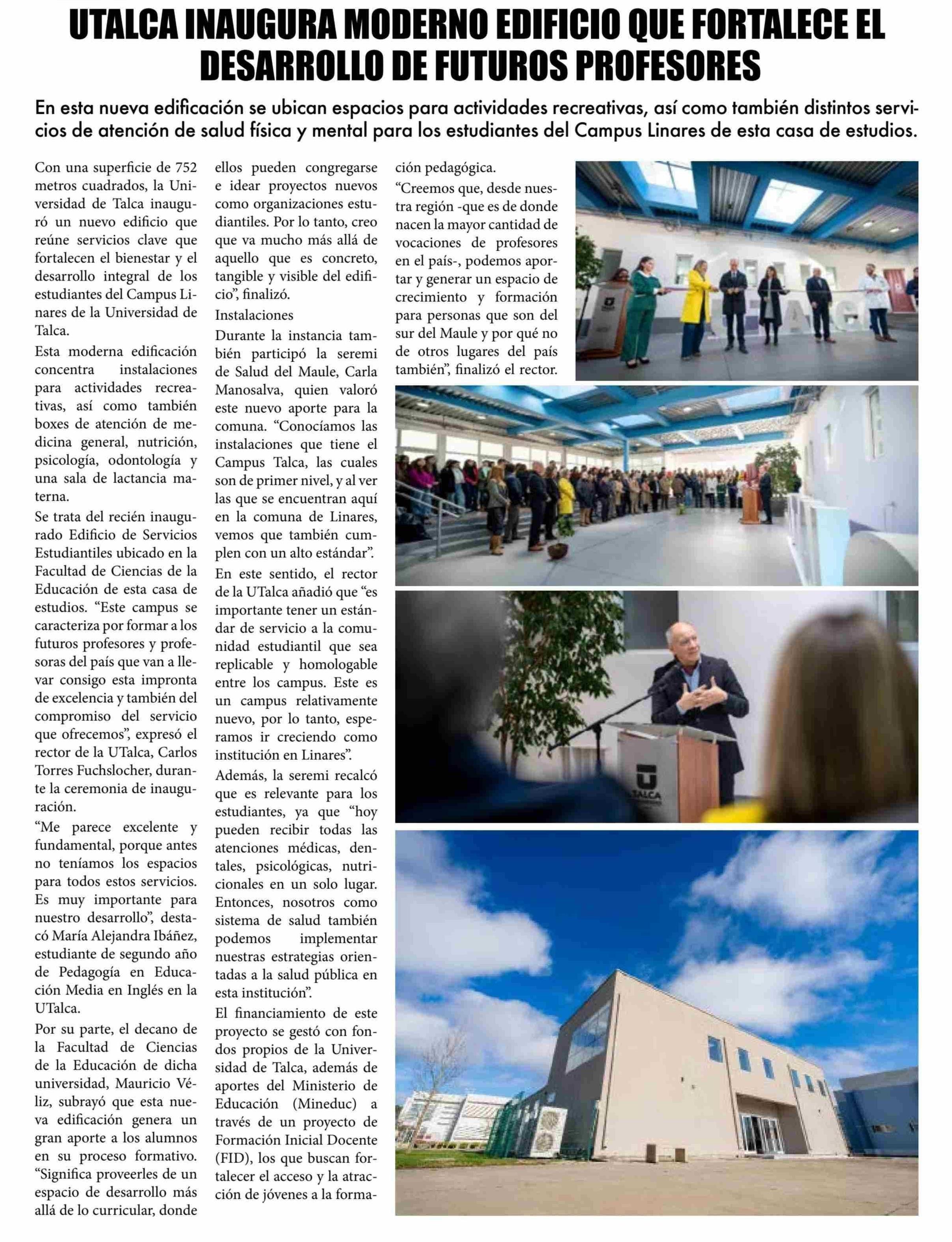 UTALCA INAUGURA MODERNO EDIFICIO QUE FORTALECE El DESARROLLO DE FUTUROS PROFESORES 21-06-2025 El Lector |