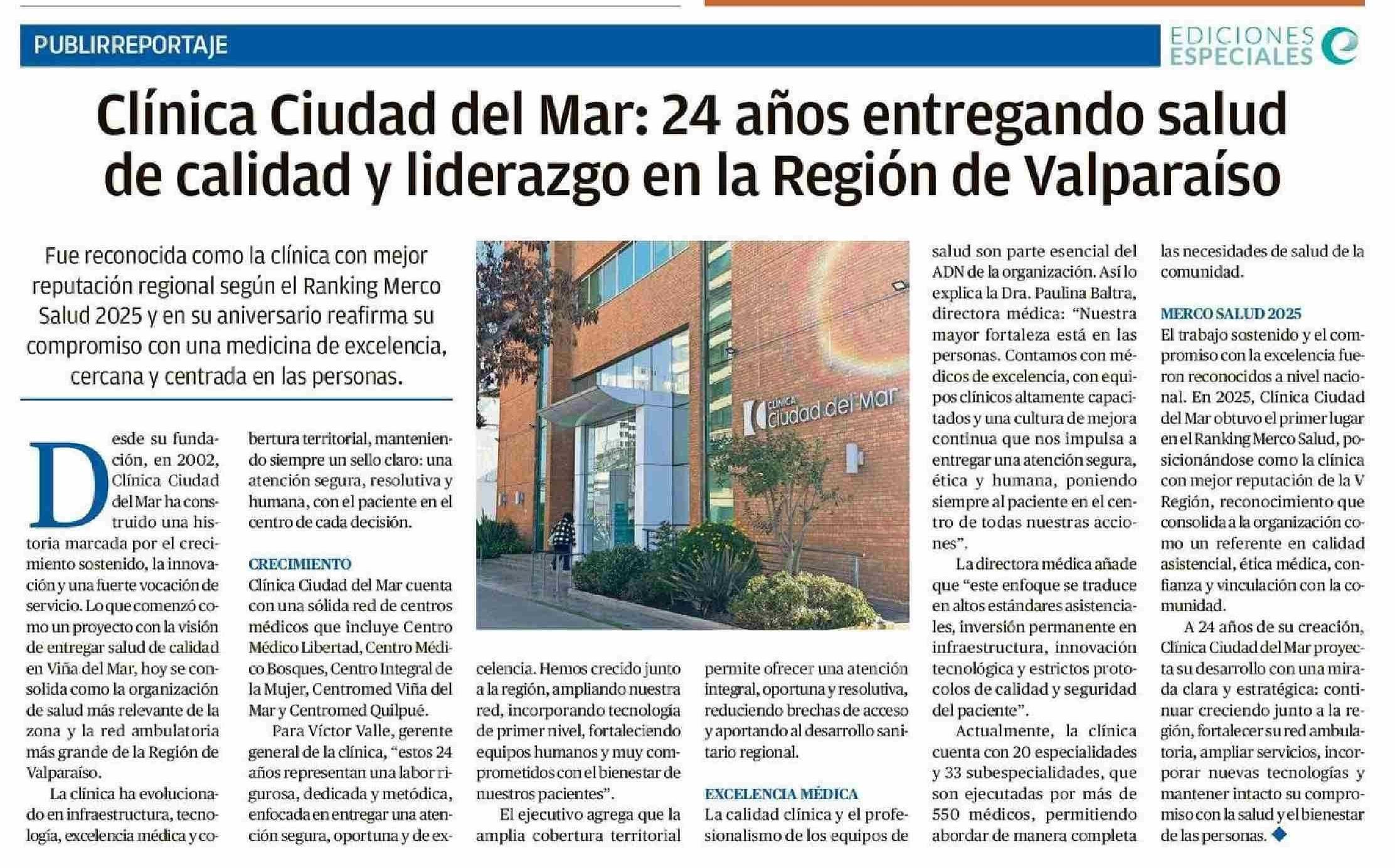 Clínica Ciudad del Mar: 24 años entregando salud de calidad y liderazgo en la Región de Valparaíso 17-01-2026 El Mercurio de Valparaíso |