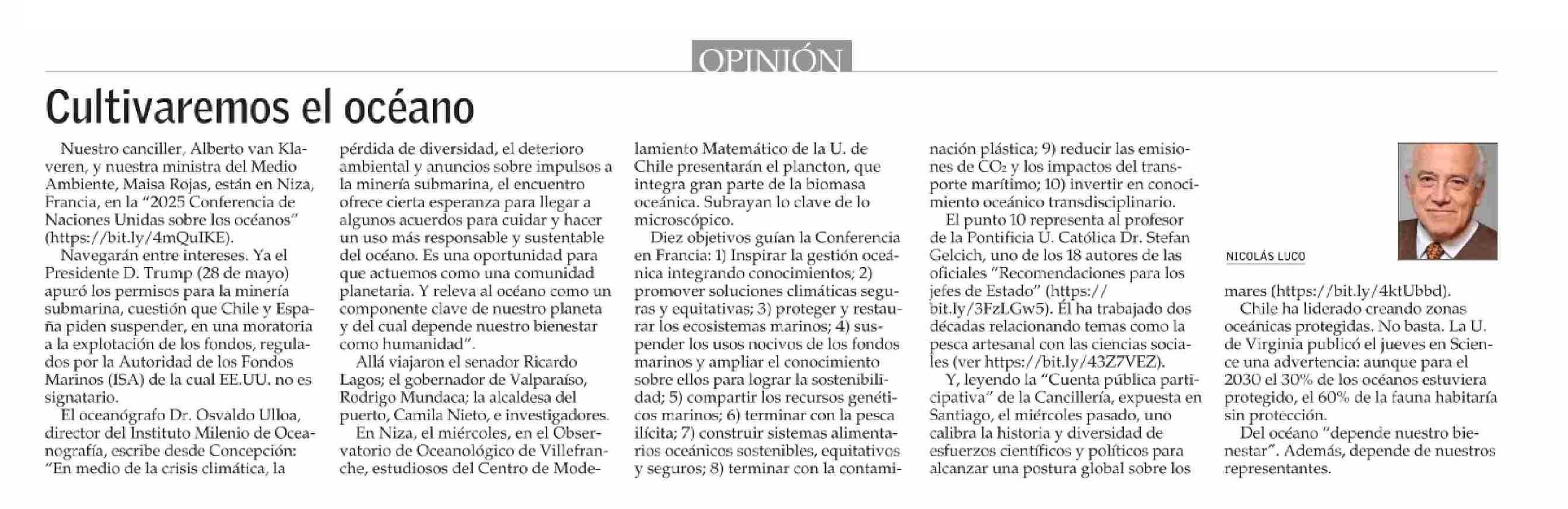 COLUMNAS DE OPINIÓN: Cultivaremos el océano 09-06-2025 El Mercurio |
