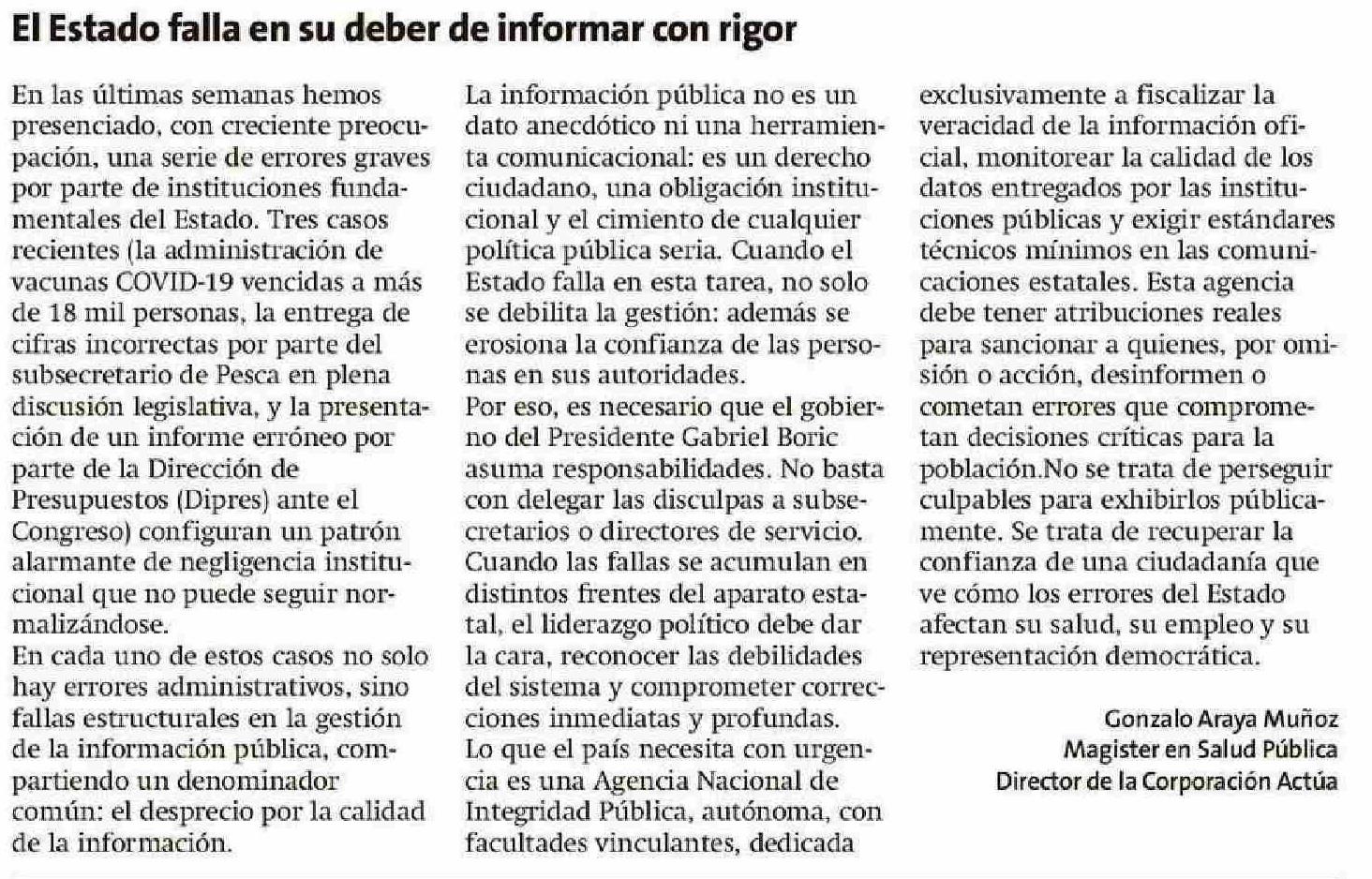 | Título: | CARTAS: El Estado falla en su deber de informar con rigor |