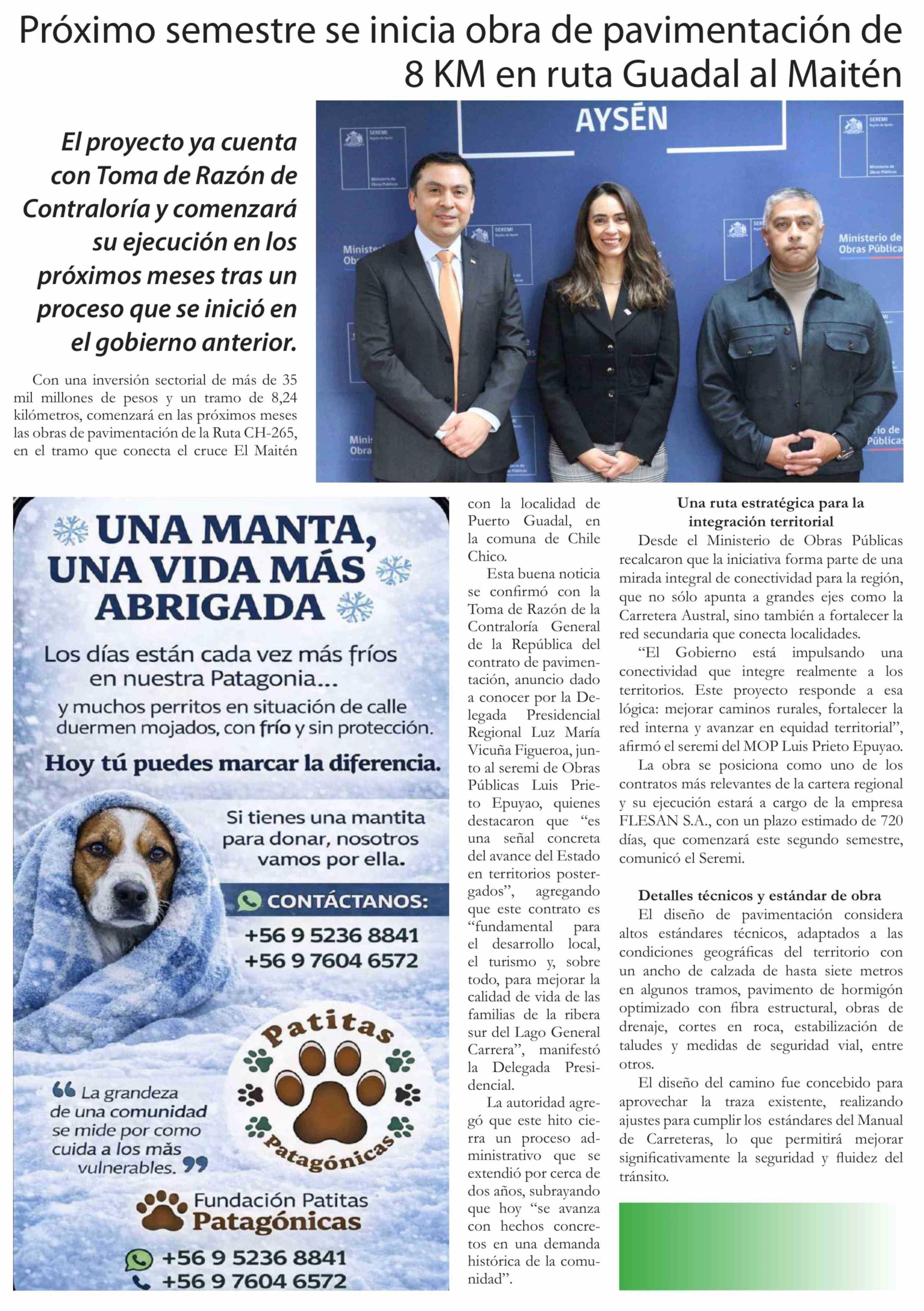 Título: Próximo semestre se inicia obra de pavimentación de 8 KM en ruta Guadal al Maitén