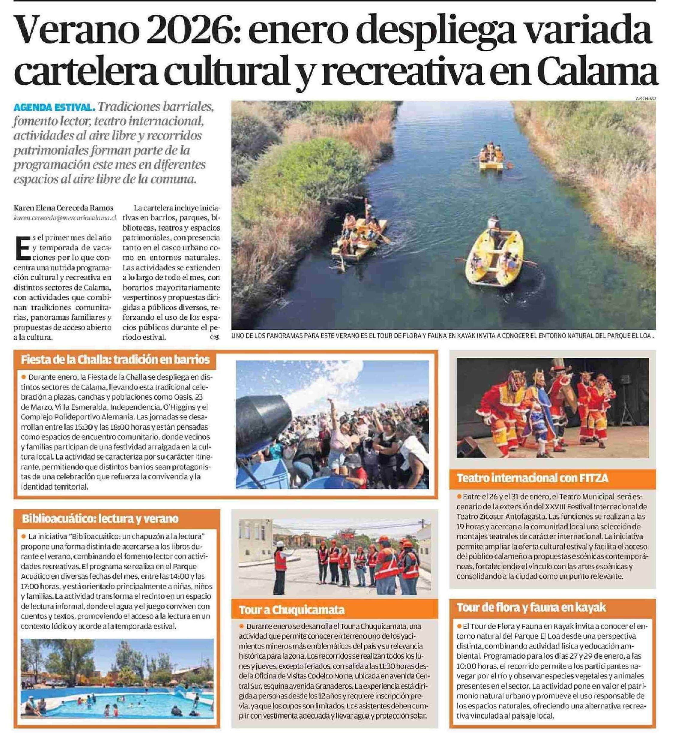 Título: Verano 2026: enero despliega variada cartelera cultural y recreativa en Calama