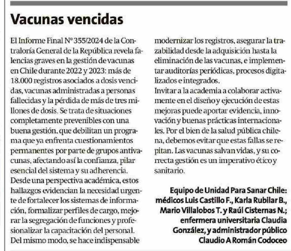 Cartas: Vacunas vencidas 20-05-2025 La Estrella de Chiloé |