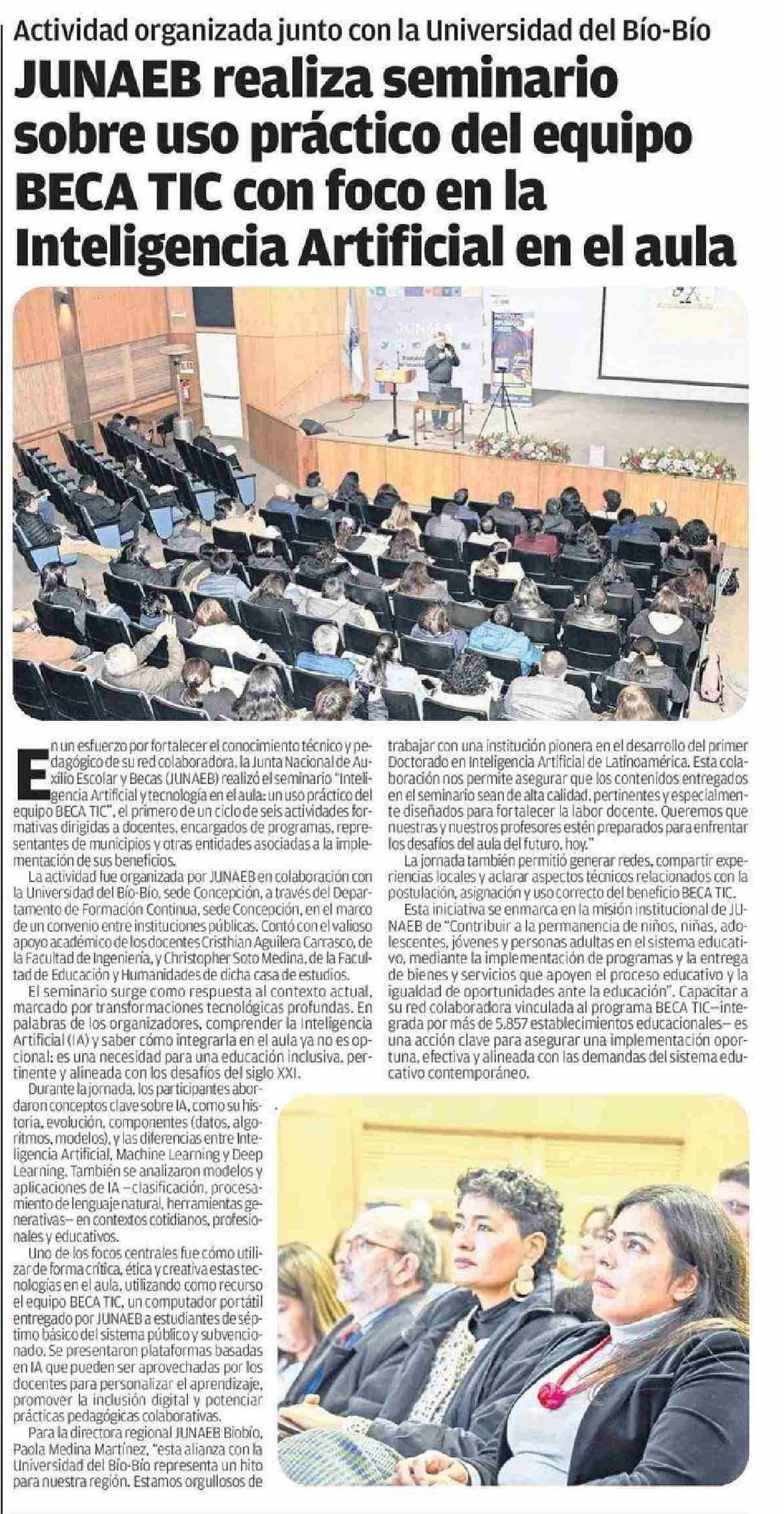 JUNAEB realiza seminario sobre uso práctico del equipo BECA TIC con foco en la Inteligencia Artificial en el aula 12-06-2025 El Sur |