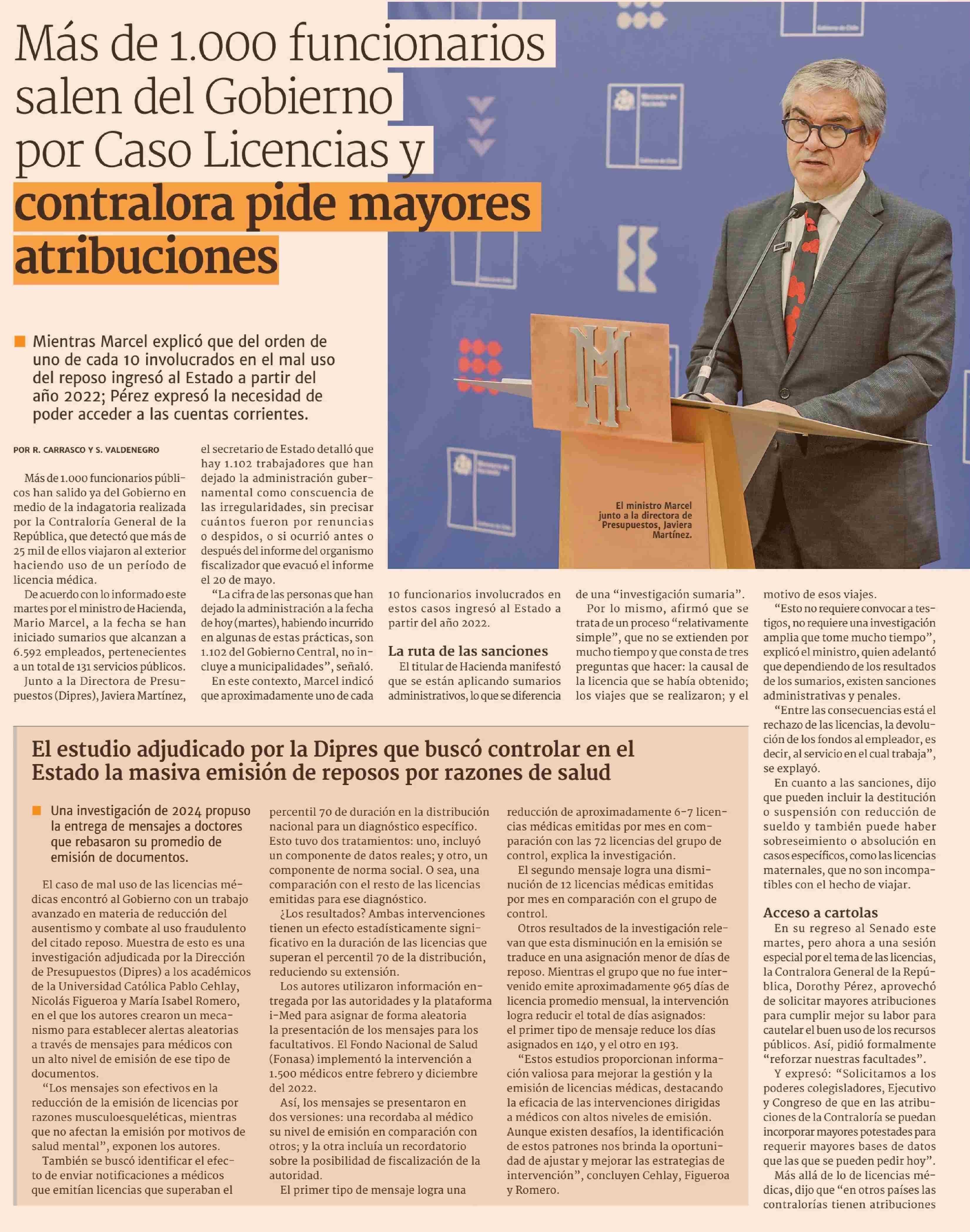 | Título: | Más de 1.000 funcionarios salen del Gobierno por Caso Licencias y contralora pide mayores atribuciones |