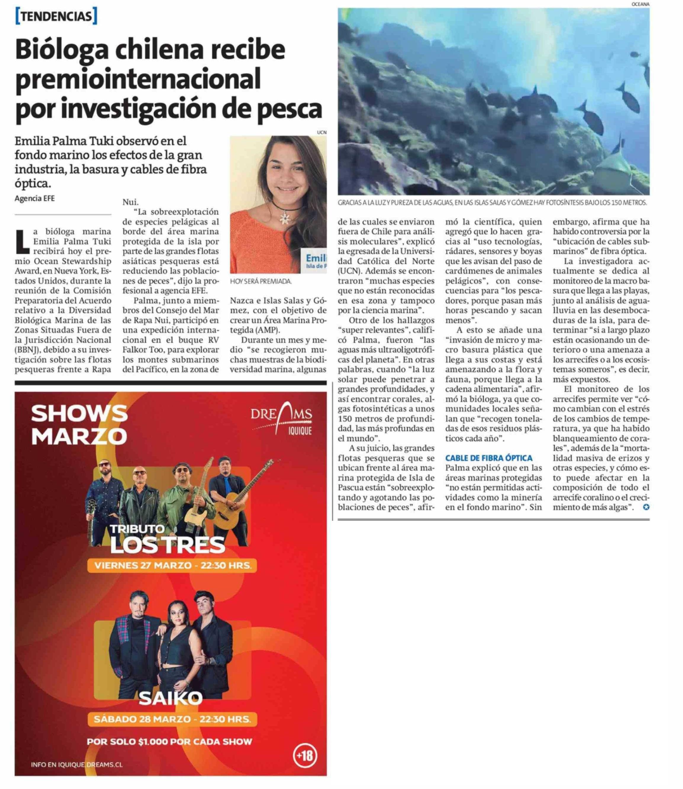 Título: Bióloga chilena recibe premiointernacional por investigación de pesca